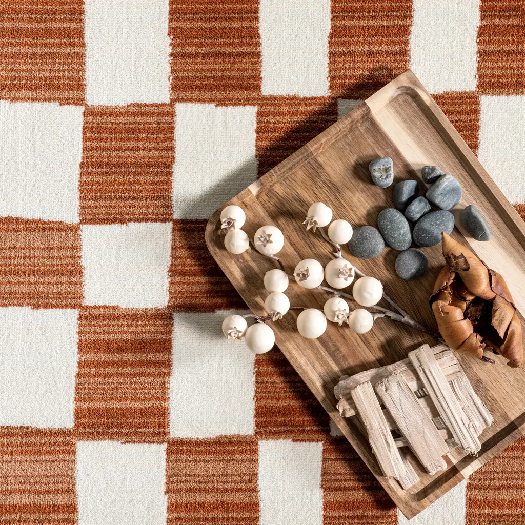 Our rugs make a statement without saying a word. With designs that are as eye-catching as they are effortless, our rugs offer the perfect finishing touch to any space. Whether you're looking to add an unexpected flair to your living room or want an area rug that will complement your decor, our collection has something for everyone. Don't just take our word for it. Shop our easy to clean and pet-friendly collections today and find the perfect rug for your home. 100% Polypropylene, made in TurkeyDesigned with resilience against everyday wear and tear, this rug is kid and pet-friendly and perfect for your bedroom, dining room, living room, hallway, or officeThis geometric area rug has a .31" pile height with 1.18" fringes lining each endEasy to care for, we recommend vacuuming regularly (avoiding fringes) to reduce potential shedding and spot cleaning any stains with carpet cleanerWe recommend using a rug pad to provide extra cushioning and to prevent any possible slipping and sliding on your flooring. Rug pads serve as protective layering piece for your floor and your rug from any wear and tear, extending the life of your rug.