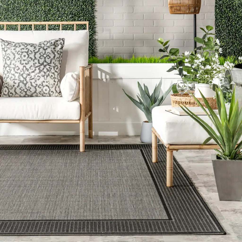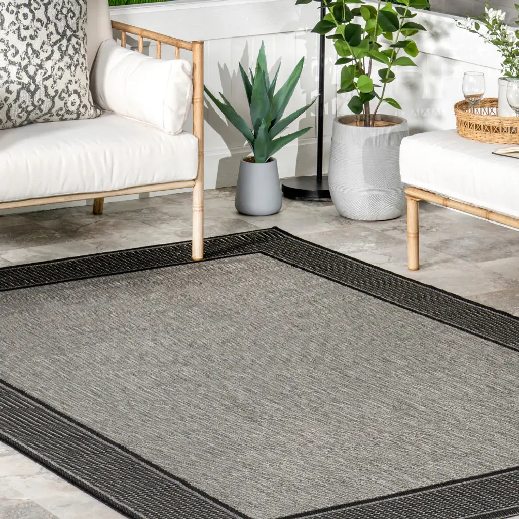 Whoever said beautiful floor accents are only for inside the home hasn''t yet met this contemporary indoor/outdoor area rug. This floor covering has neutral hues that is designed to blend seamlessly with any of your current decor and made with durable fibers to last for years to come. Place this rug in your dining room or on your patio to tie together your space. Kick back and relax with our easy to care for and pet-friendly area rugs.100% Polypropylene, made in BelgiumDesigned with resilience against everyday wear-and-tear, this rug is kid and pet friendly and perfect for high traffic areas both indoors and outdoors such as patio, living room, kitchen, and hallwaysMade from sustainably-sourced premium synthetic fibers with a 0.04" pile height that allows for convenient placement in entrways or under furnitureWater resistant and easy to clean, this rug can be hosed down outside and spot treated for any mild stains using rug cleanerWe recommend using a rug pad to provide extra cushioning and to prevent any possible slipping and sliding on your flooring. Rug pads serve as protective layering piece for your floor and your rug from any wear and tear, extending the life of your rug