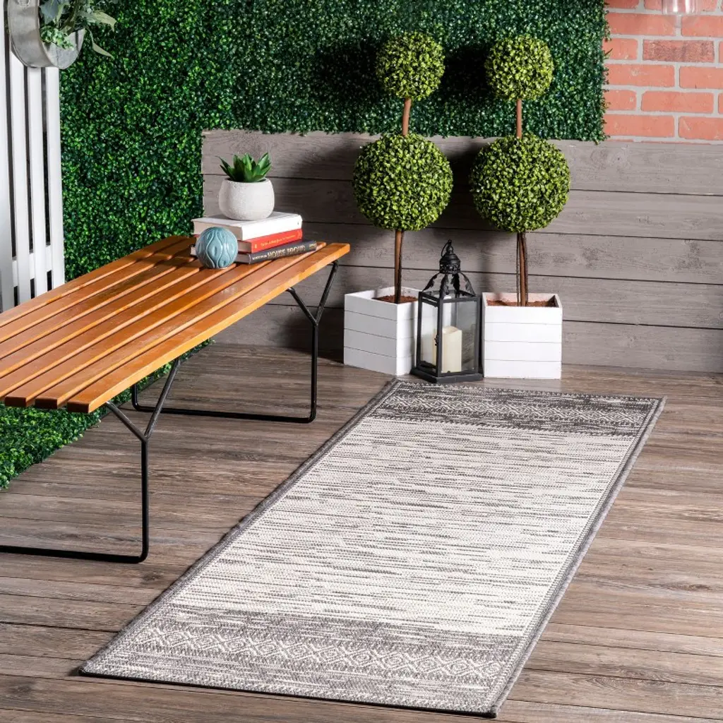 Nuloom Lana Trellis 2X8 Indoor/outdoor Runner Rug For Living Room Patio Deck Front Porch Entryway Hallway Kitchen, Grey/ivory
