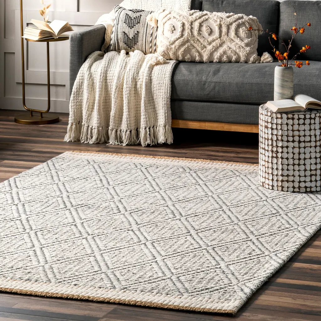 A touch of creativity and beauty for your floors and walls. At Nuloom, we believe that floor coverings and art should not be mutually exclusive. Whether your interior is modern or traditional, Nuloom is your trusted design partner. Our area rugs are versatile and can be used as art as well as flooring. With a wide variety of styles and color palettes to choose from, we're confident that you'll find the perfect fit for your space. Learn more about easy to clean area rugs.Features:80% Wool, 20% Jute, made in IndiaAdd warmth to your living room, bedroom, dining room, kitchen, or entryway with just the right amount of style, durability, and comfort with this wool blend rugThis Moroccan rug has a medium .65" thickness that feels plush underfootShedding is common in wool rugs, in addition to regular surface vacuuming, clean the floor under the rug. Spill or stains can be cleaned by gently blotting with a clean white clothWe recommend using a rug pad to provide extra cushioning and to prevent any possible slipping and sliding on your flooring. Rug pads serve as protective layering piece for your floor and your rug from any wear and tear, extending the life of your rug.