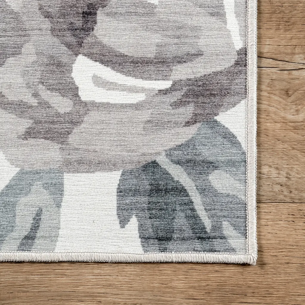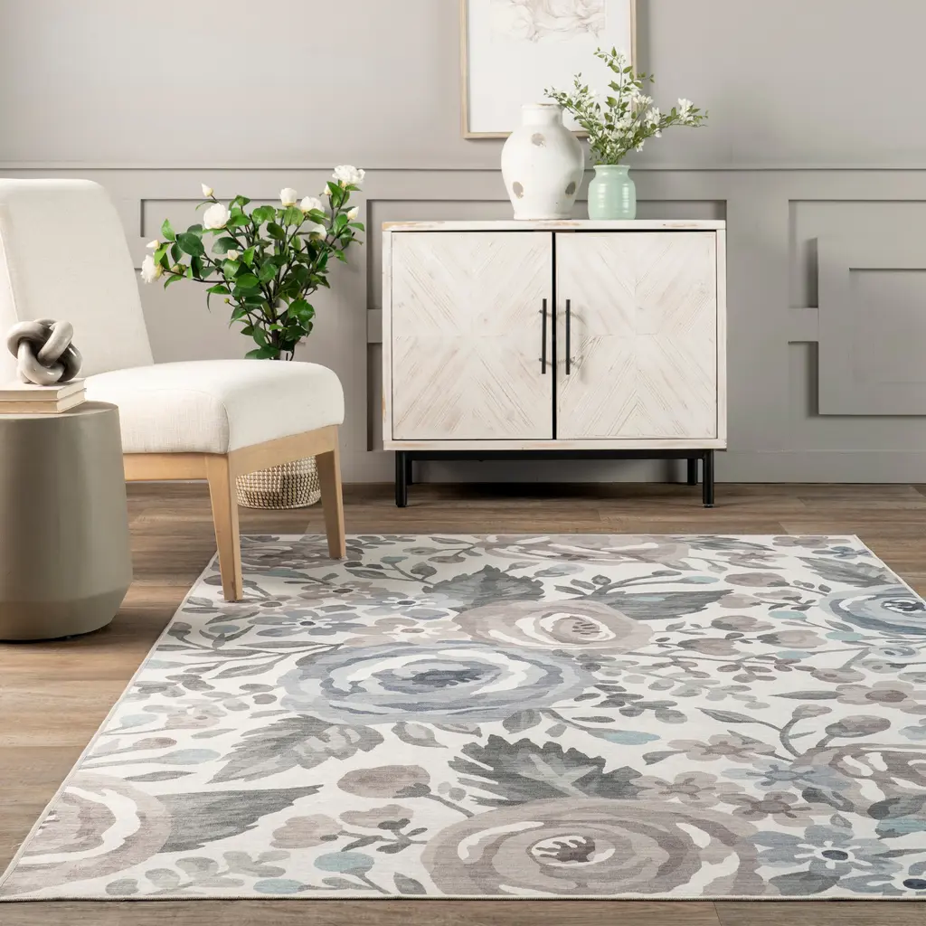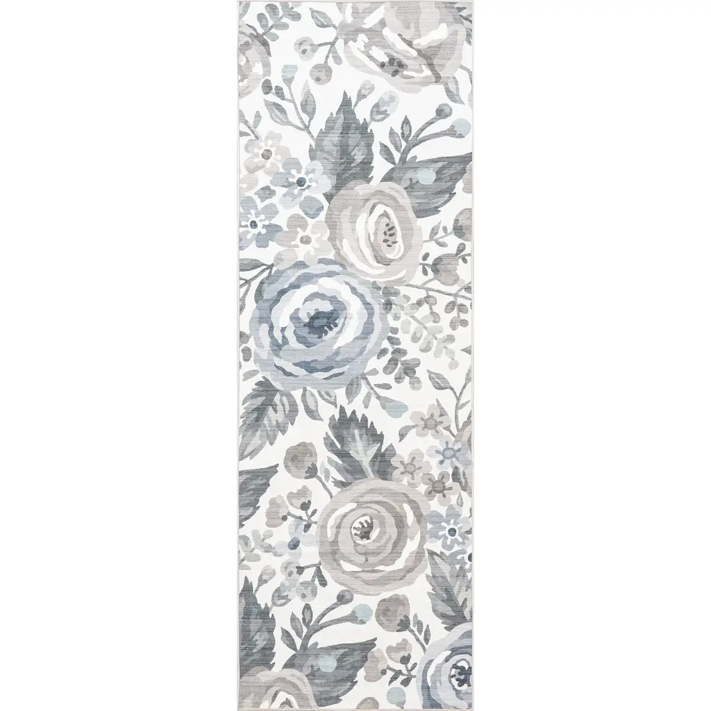 Nuloom Tiffani Floral Machine Washable Splashguard Area Rug - 2' 6" X 6' - Light Grey - Rectangle