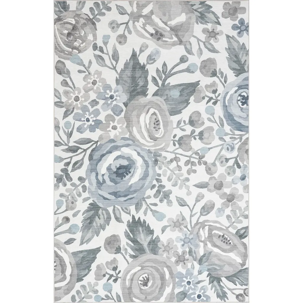 Nuloom Tiffani Floral Machine Washable Splashguard Area Rug - 3' X 5' - Light Grey - Rectangle