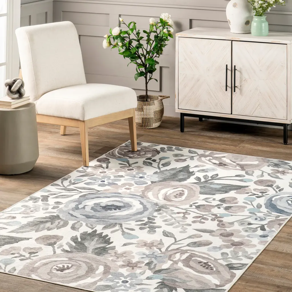 Nuloom Tiffani Floral Machine Washable Splashguard Area Rug - 4' X 6' - Light Grey - Rectangle