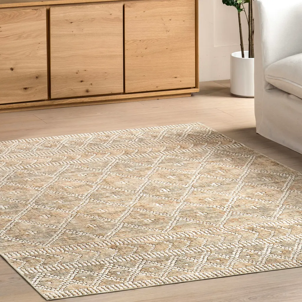 Nuloom ÚNa Lattice Splashguard Machine Washable Area Rug - 2' 6" X 8' - Tan - Runner