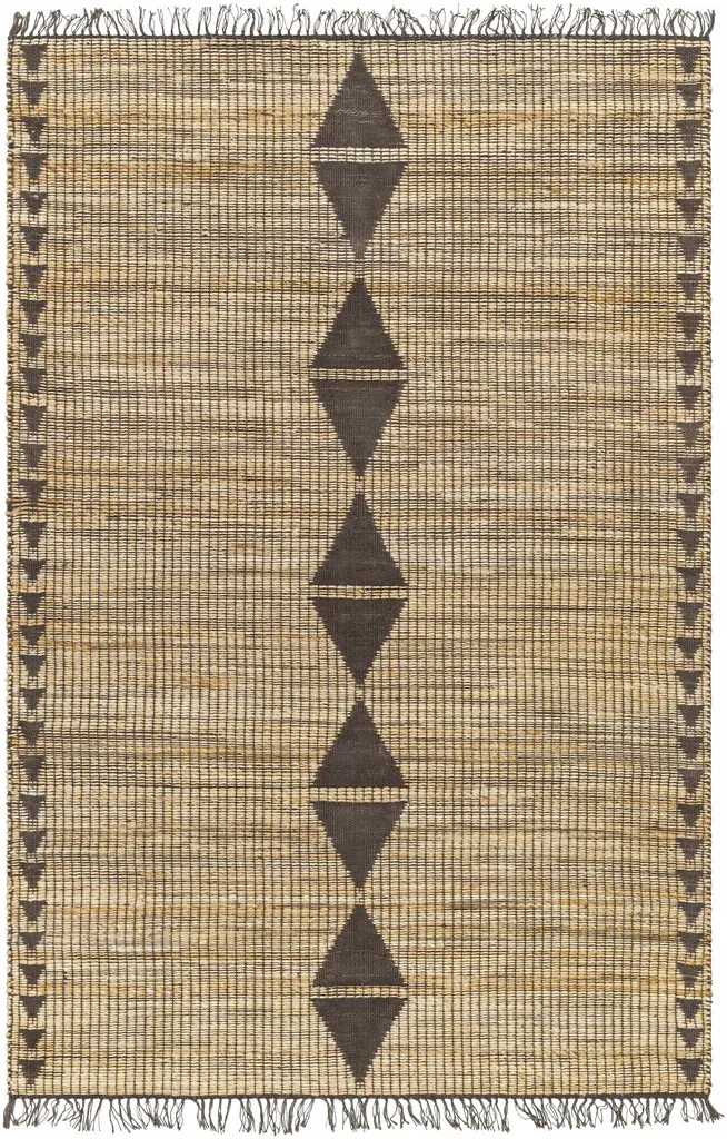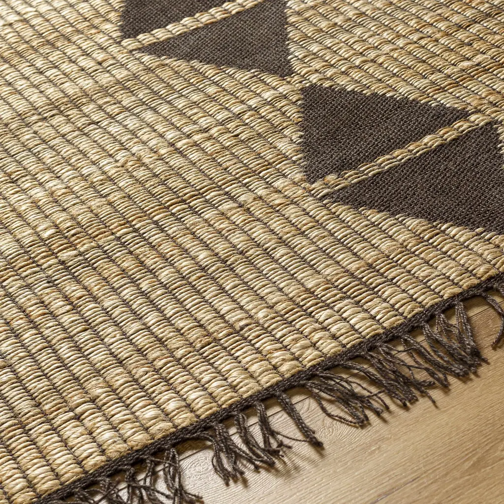 Collection: Ochoa Colors: Camel, Gray, Tan, Dark Purple, Brick Red Construction: Hand Woven Material: 100% Jute Pile: No Pile Styles: Transitional,Traditional Backing: Felt Made In: India Thickness: 0.2" Fringe Length: 2" Price Range: $$$$$ (Affordable)