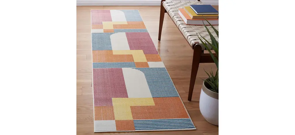 Flamboyant and refined, the Olli Runner Rug provides the audacious spirit of Art Deco design. Displaying block geometrics, colorful mosaics and artfully layered shapes, it beams with cosmopolitan flare. Made using soft, synthetic yarns in a medium cut pile for lasting beauty and comfort.
