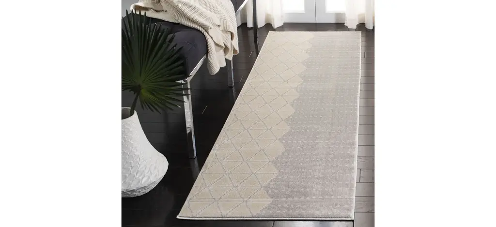 Flamboyant and refined, the Omnette Runner Rug provides the audacious spirit of Art Deco design. Displaying block geometrics, colorful mosaics and artfully layered shapes, it beams with cosmopolitan flare. Made using soft, synthetic yarns in a medium cut pile for lasting beauty and comfort.