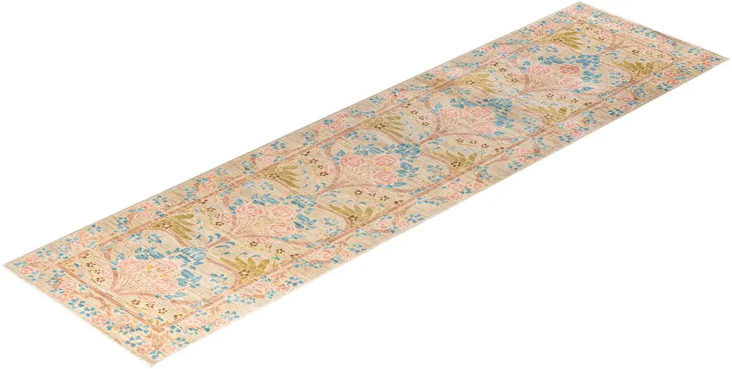 One-of-a-kind Hand-knotted Beige Runner, 2'8" X 10'