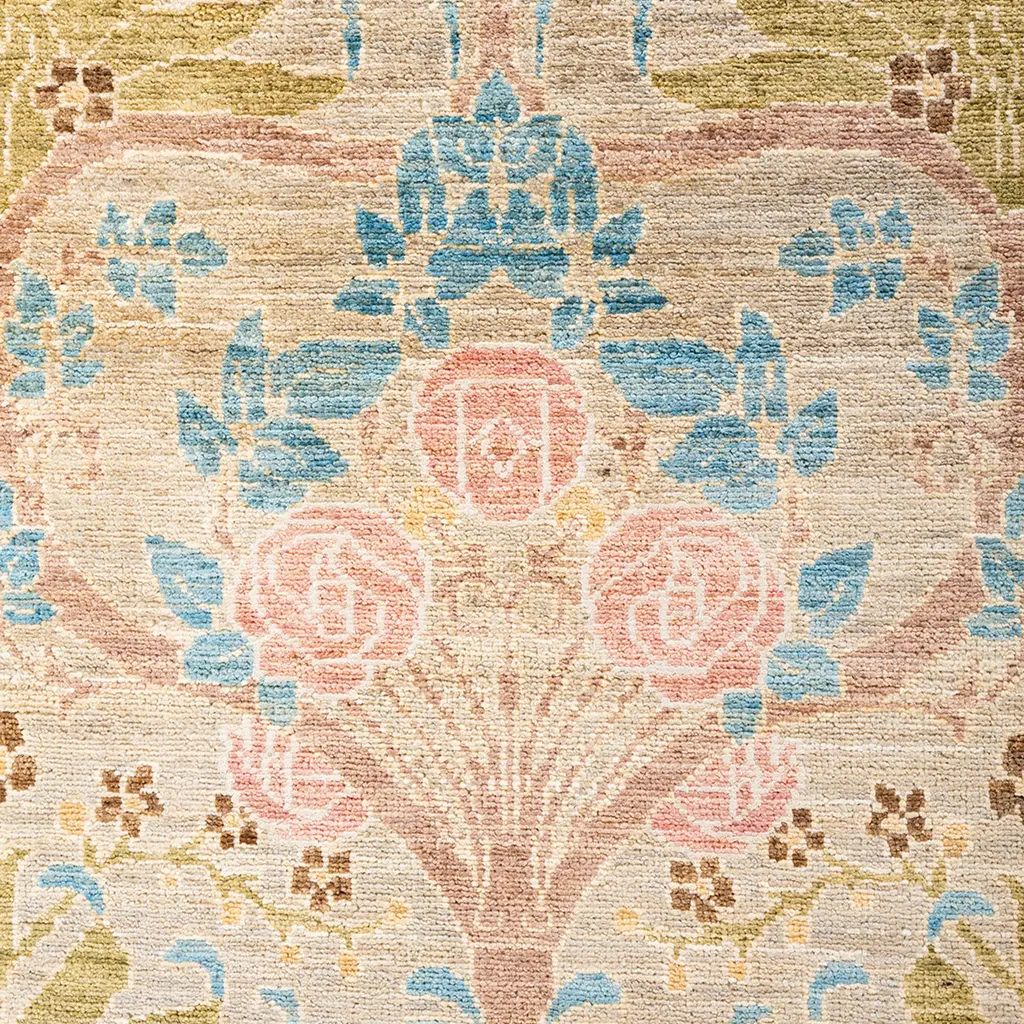 With simple, bold, yet informal designs and a broad palette of colors that ranges from earthy hues to brilliant gems, the rugs in the Arts & Crafts collection infuse a room with a sense of sophisticated rebellion. Nature-inspired motifs are the focal point in lieu of more traditional motifs. Skillfully made with sumptuous wool piles, these rugs bring a harmonious freedom and charming irreverence to any space.