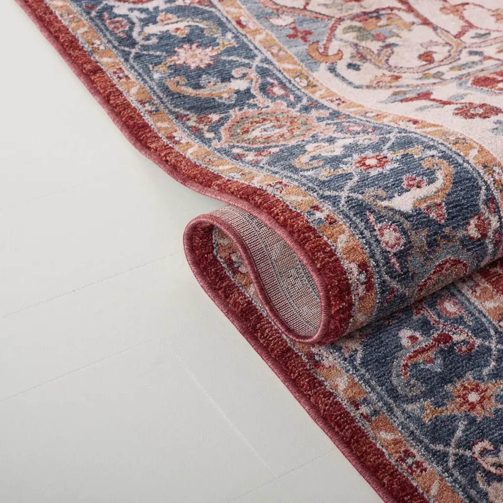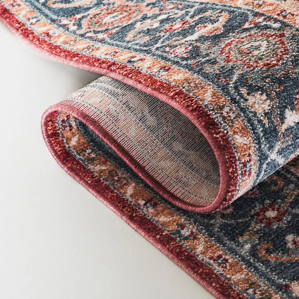 Introducing our exquisite Traditional-Style Runner Rug, meticulously crafted to accentuate your hallway or long, narrow spaces with a timeless elegance. Sized at a convenient 2' X 8', with a comfortable pile height of 5/8", this runner is perfect for adding warmth and texture to your floor. As you feast your eyes on this power-loomed masterpiece, you will be drawn to its intricate patterns, displaying a rich amalgamation of red and ivory blue hues. The use of spacedyed polyester gives the rug a unique look, with subtle color variations that provide both depth and character. The beauty of this rug's pattern is apparent from the image, where you can spot traditional motifs that resonate with artistry and cultural heritage. Whether placed in your entryway, living room, or alongside your bed, this runner promises to deliver an opulent touch. Proudly made in Turkey, where rug-making is not just an industry but a centuries-old craft, this rug echoes the region's dedication to quality and durability. Furthermore, we?re pleased to confirm that our runner is OEKO-TEX certified, ensuring it meets high environmental and health standards. Bring this luxurious piece into your home and experience the perfect blend of traditional design with modern craftsmanship, all the while knowing you?ve made a responsible choice that supports a healthier indoor environment.