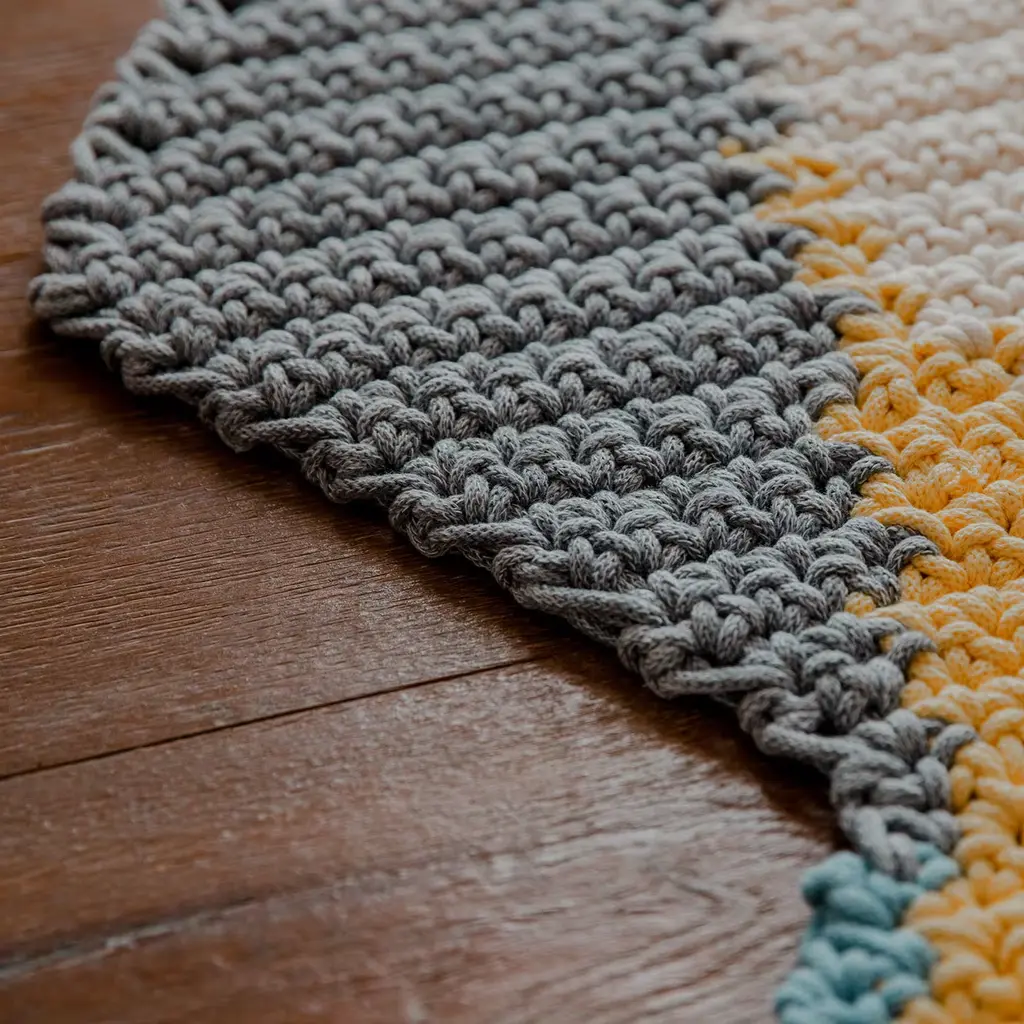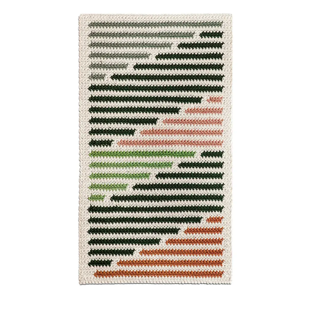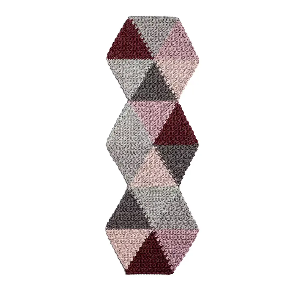 Distinguished by pastel and earthy hues, this runner rug is exquisitely hand-crocheted from a recycled natural cotton material without chemical dyes. Boasting a unique silhouette composed of three hexagonal elements, it will make a refined accent to a modern bedroom, hallway, or entryway. This piece is customizable in size upon request.