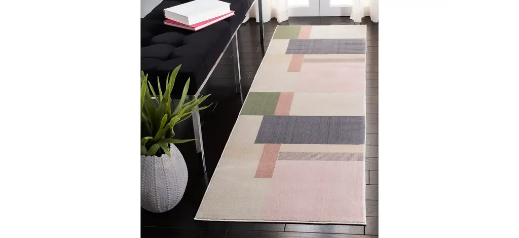Flamboyant and refined, the Orwell Runner Rug provides the audacious spirit of Art Deco design. Displaying block geometrics, colorful mosaics and artfully layered shapes, it beams with cosmopolitan flare. Made using soft, synthetic yarns in a medium cut pile for lasting beauty and comfort.