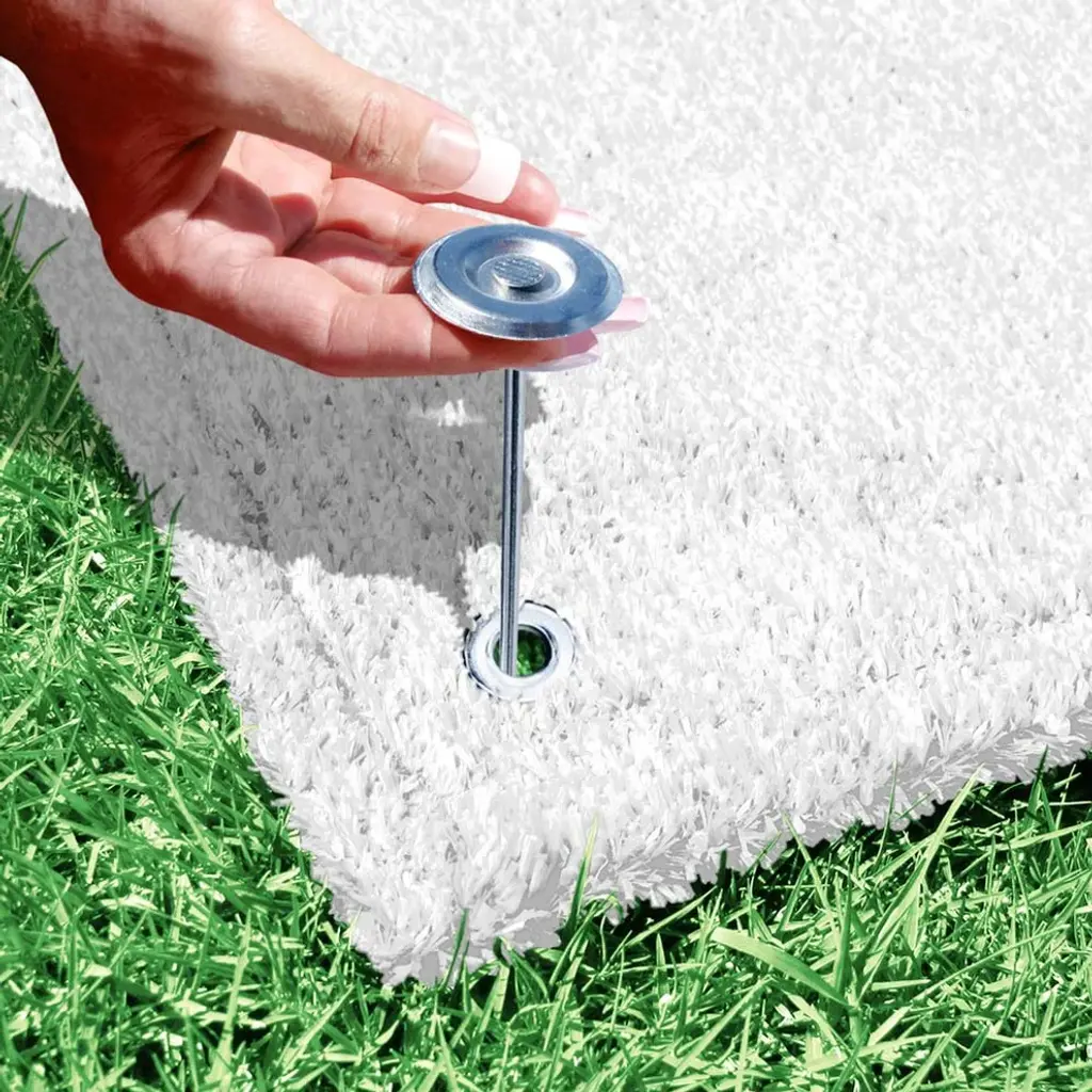 Outdoor Turf Runners from House Home & More are great for outdoor weddings and other special events! Easy to clean - just hose off and dry! Includes FREE rug stakes that allow you to secure the grommeted corners/sides to the ground. Stakes have a low profile to provide a smooth walking surface. The quantity of stakes included will correspond to the number of grommets. Made in the U.S.A. Made of outdoor/artificial turf with a light-weight marine backing -Hemmed on all edges to prevent fraying -Reinforced, grommeted corners for easy stake-down (All sizes longer than 10 feet have additional grommets every 7 - 10 feet on each long side) -UV-Protected ? weather and fade resistant -Durable, yet light-weight (approx. pile height is _")