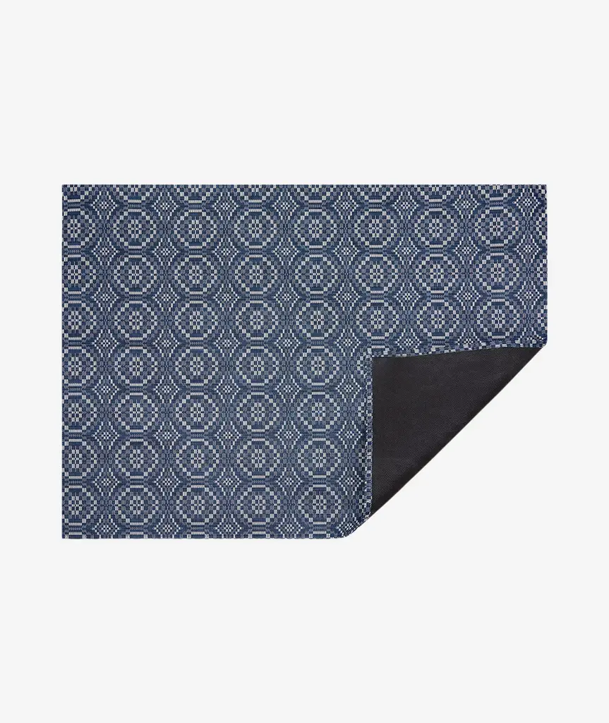 Made from woven textiles, our floor mats are durable, versatile beautiful and easy to clean. Perfect for use in entryways, dining areas, bedrooms, living areas and kitchens. With lively yet refined rows of interlocking concentric circles, Overshot is a contemporary interpretation of traditional textiles. It is named for a weave structure with a long history and a distinctive construction: as the weft yarn jumps or "shoots" over the foundational plain weave of the warp yarns, a decorative pattern layer is created. This design takes inspiration from vintage American coverlets. Used as the topmost covering on a bed and distinct from quilts, these woven textiles were especially popular during the early to mid-nineteenth century. The earliest examples were made with an overshot weave, and this craft continues today. TO CLEAN: Vacuum to remove loose dirt or wipe clean with soap, water, and a soft sponge or cloth. Resists stain-causing bacteria, mold, and mildew. For over a decade, New York based designer Sandy Chilewich has been creating original and innovative vinyl products for the home. Her woven, tufted, molded and spun textiles are available in a range of vibrant and neutral hues that have become synonymous with the Chilewich brand name.