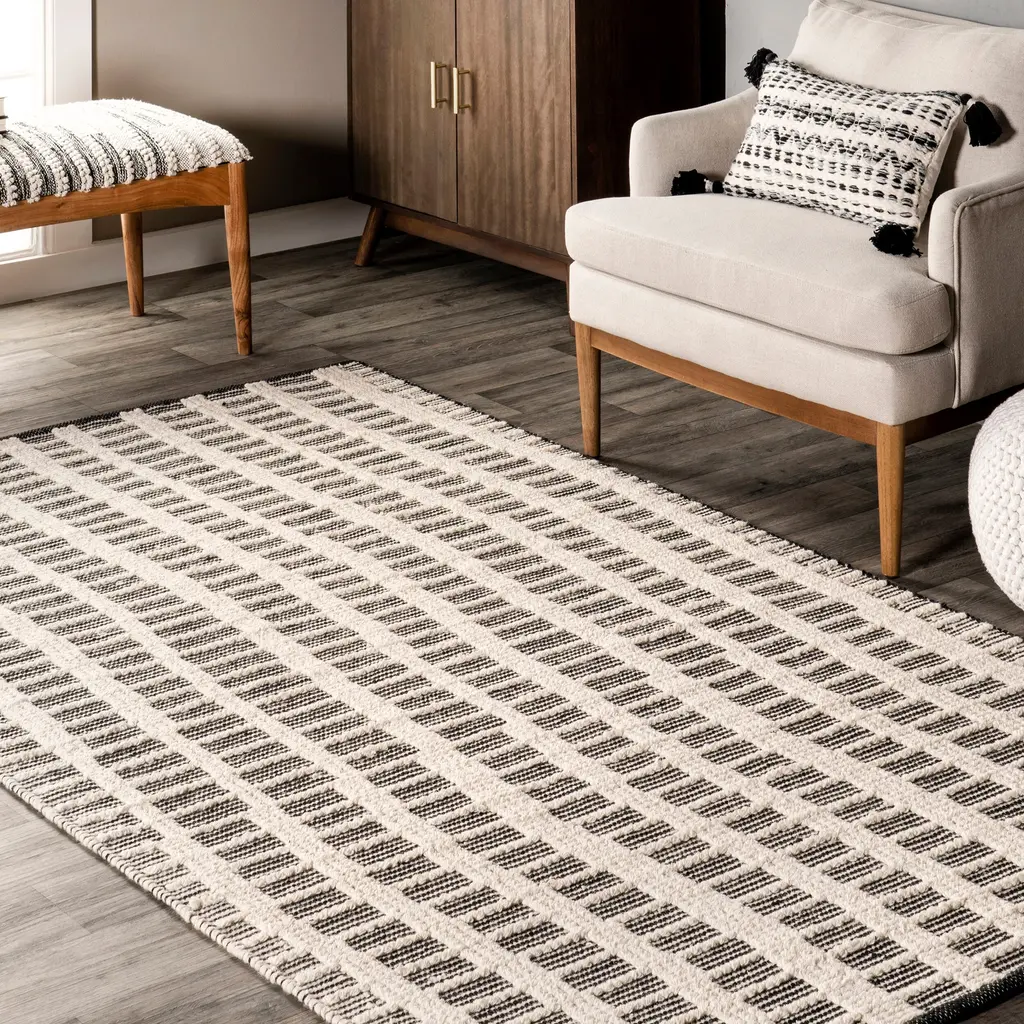 Check, please! We're ready to bring the Parker Rug home right away. In shades of black and white, it exudes a classic, monochrome vibe that's perfectly balanced by the abstractly gridded design. It delivers a high-end-but-accessible-for-all look style. The hand-hooked construction delivers incredible detail and texture, and the wool-cotton blend elevates with ease. The search is over-the perfect foundation for your room is here.