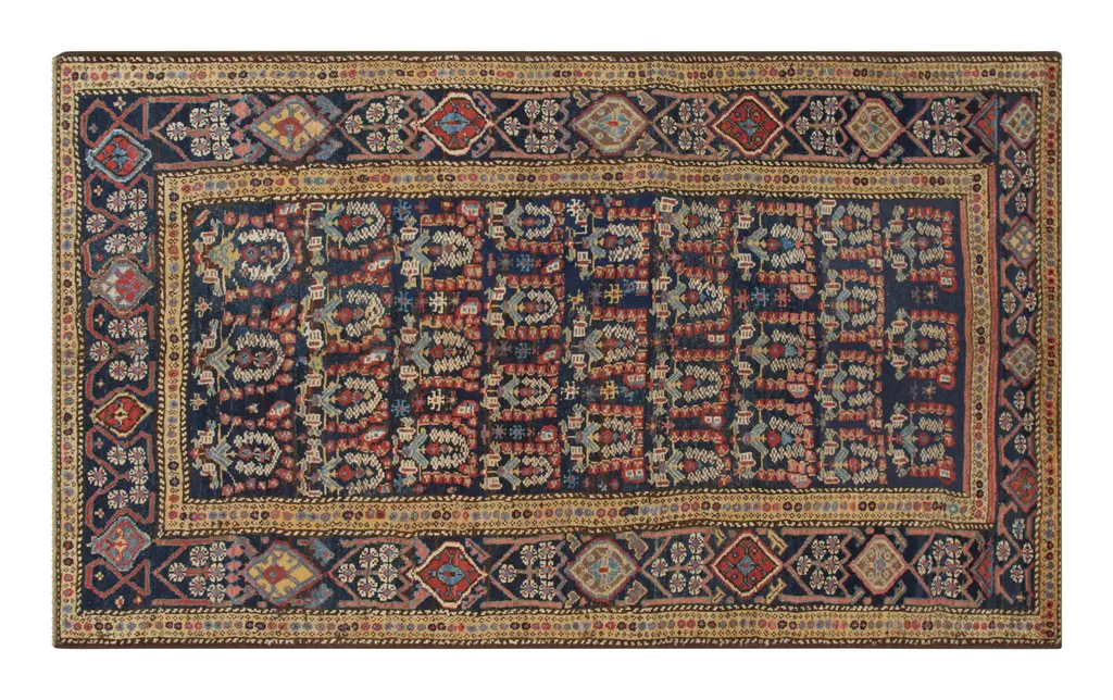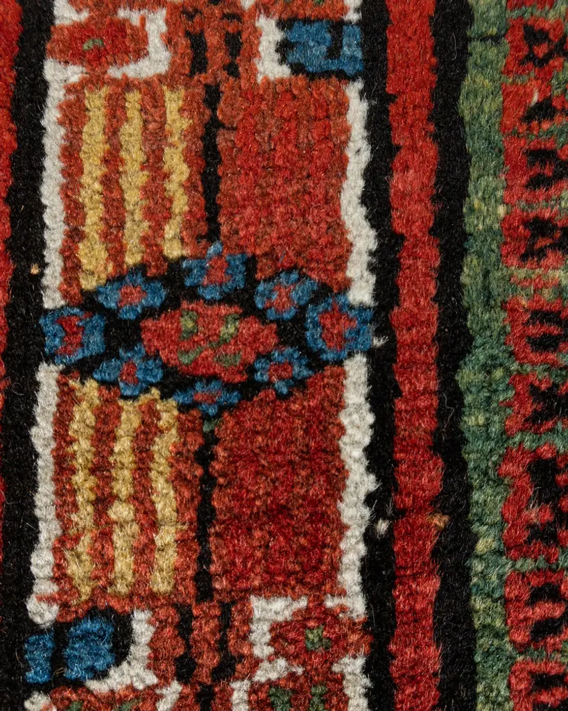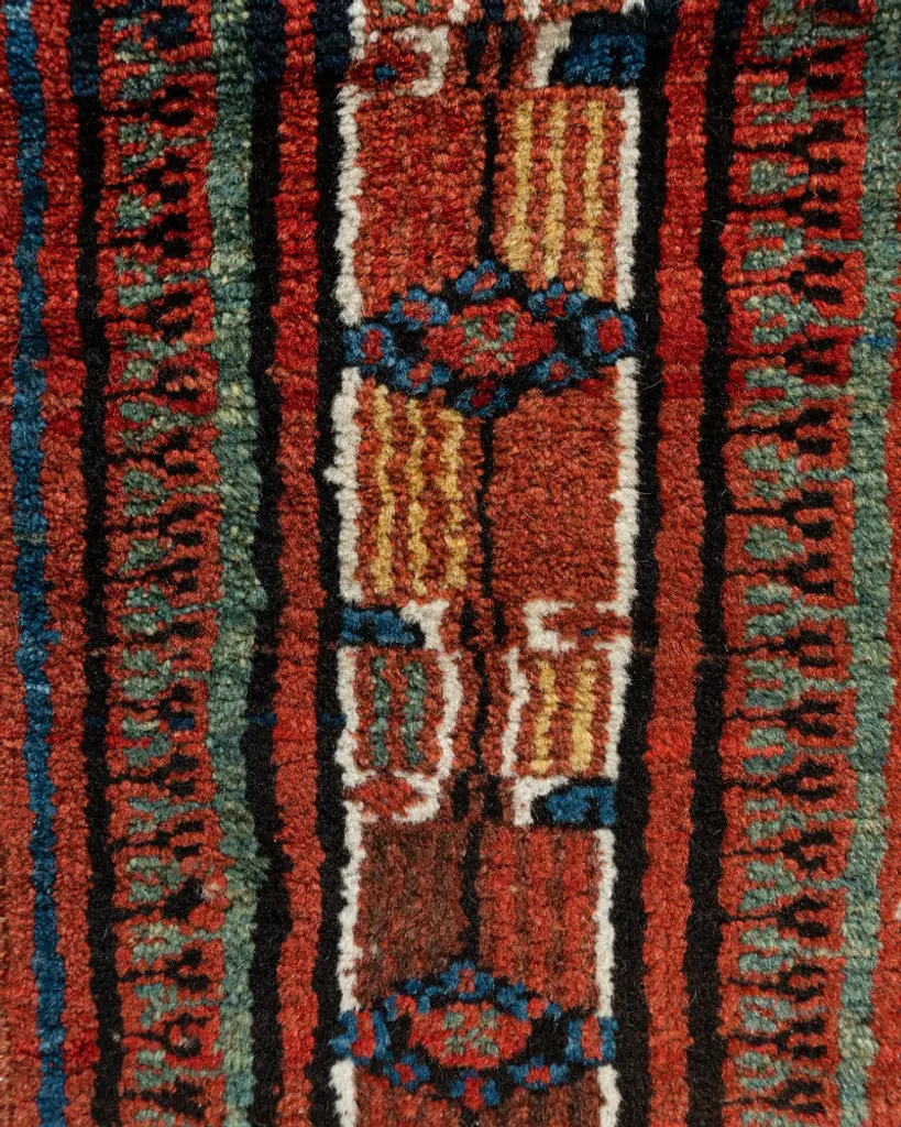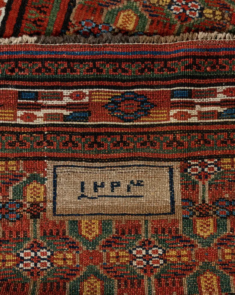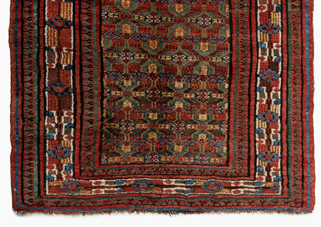 A wonderful antique Serab gallery-runner rug with the date in Persian 1916 woven into rug, in a hard to find size. Serab is located on the edge of the Heriz weaving area and specializes in runners. The patterns are geometric, the wool pile is quite dense and more modern rugs tend toward lighter palettes. Few scatters and no room size antique Serab�����s were woven. Colors: brick/green/ivory/gold/black.
