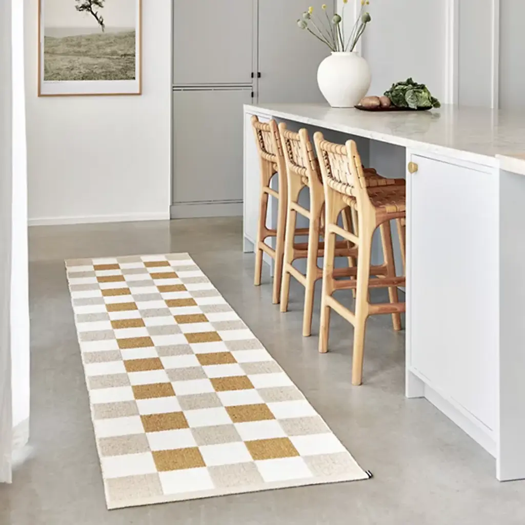 Presented by Pappelina, the Pix Indoor/Outdoor Runner is a delightful piece for your space, adding aesthetic energy with a playful checkerboard pattern that plays across the surface. Made in Sweden from a flatweave construction, it’s composed of machine-washable material. It’s also reversible and outdoor-friendly, offering versatility in locale and aesthetic.