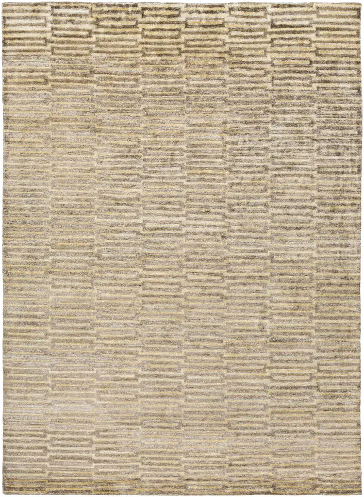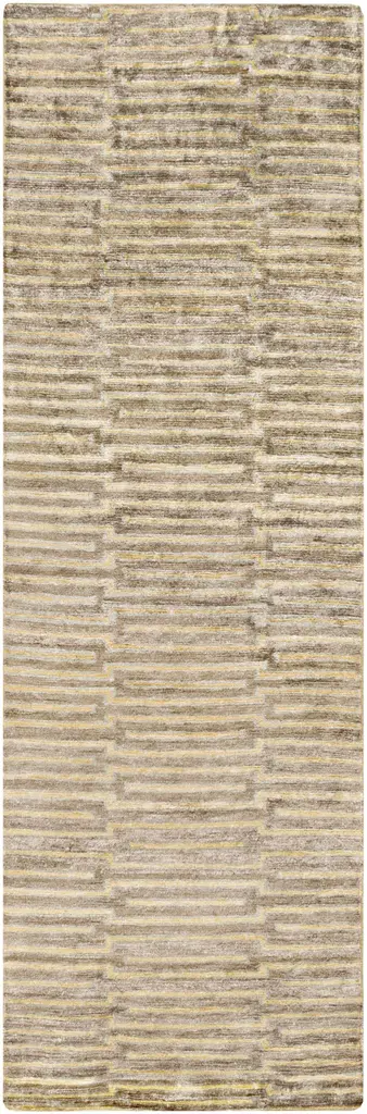 Collection: Porthmadog Colors: Camel, Charcoal, Gray Construction: Hand Knotted Material: 100% Viscose Pile: Medium Pile Pile Height: 0.31" Styles: Contemporary Made In: India Thickness: 0.39" Price Range: $$$$$ (Premium)