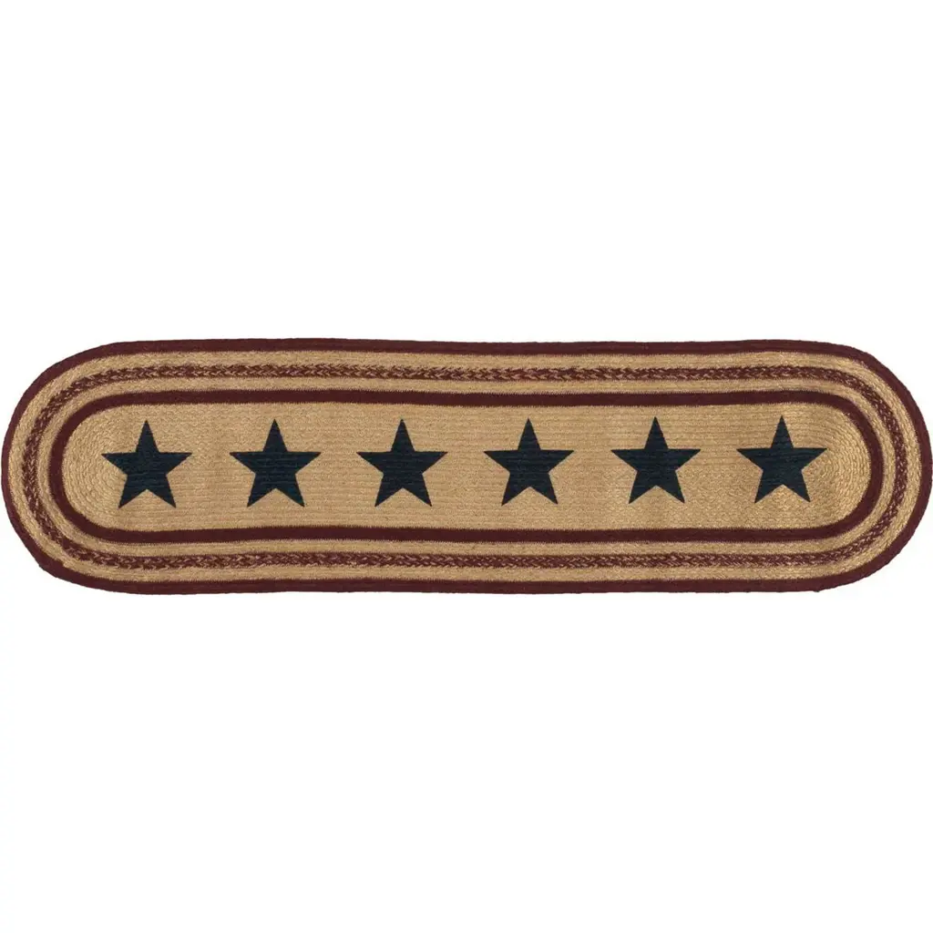 Invite an instant Americana classic into your home or retreat with Potomac Jute! Featuring variations of burgundy and natural jute braids. Five stenciled navy 5 point stars are proudly displayed in the center. Reverse has no stenciled stars. * To prevent colors from bleeding do not use chemicals or wet clean this item. A rug pad is recommended to keep your surfaces safe from color bleeding and abrasiveness of the jute fibers.