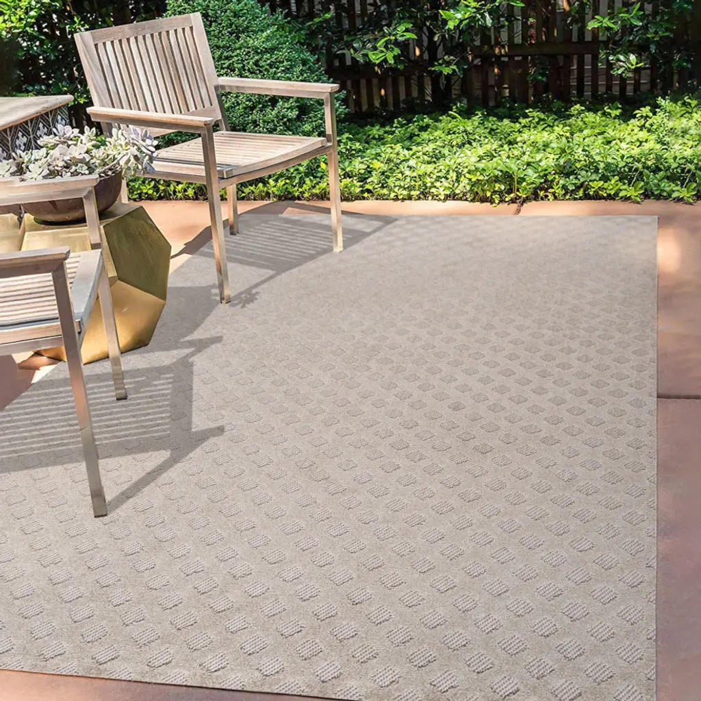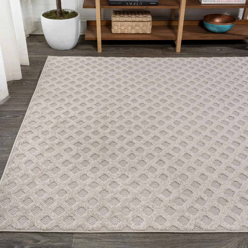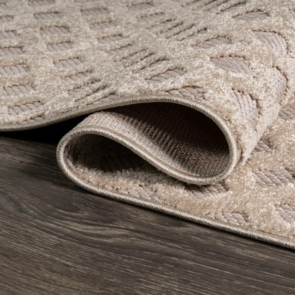 Rabat High-Low Pile Mini-Diamond Trellis Indoor/outdoor Runner Rug, Beige, 5'x8'