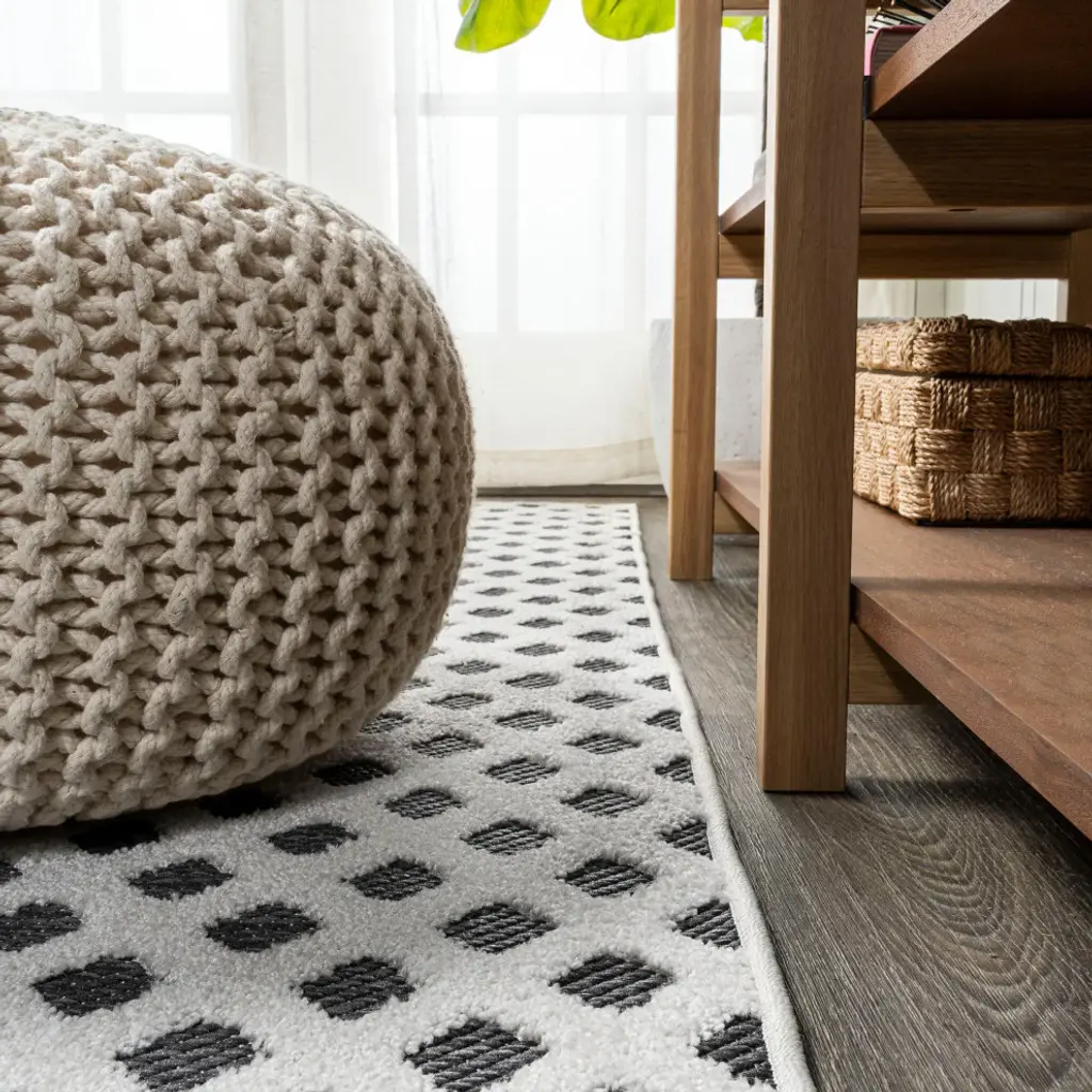 Inspired by Mediterranean garden style, our modern rug is power-loomed with a short pile. The classic diamond trellis pattern is woven all over so it''s perfect for a living room, dining room, kitchen, bedroom or entry. Add some Old World flair to your home with this easy-care rug.Features:• Power loomed with a .31" pile that''s soft and durable• Made from easy-care polypropylene - just sweep, vacuum or hose down with mild soap and water• 100% Polypropylene• No backing, use of rug pad is recommended (sold separately)• Power Loomed in Turkey• Thickness measures: 0.31 in.• Available in multiple sizes and/or colorsRug Care:• Vacuum regularly and spot clean as needed; avoid direct and continuous exposure to sunlight; use brushless vacuum; remove spills immediately; if liquid, blot with clean, undyed cloth by pressing firmly around the spill to absorb as much as possible; for hard to remove stains, professional rug cleaning is recommended; store in a dry, well ventilated area and rotate for consistent wear• Packing and shipping may cause temporary creases in rugs, which will flatten out after a week on the floor; to expedite the process, try back-rolling your rug before laying it down, and then allow ample time for the remaining creases to relax• Please Note: Due to differences in monitors, some rug colors may vary slightly. Lengths and widths may vary from the published dimensions. Patterns may vary slightly according to shape and size selected.About us:Style your floors with JONATHAN Y. By combining fine craftsmanship and design, this New York creative studio is bringing fashion to your floors. The collection mixes sustainable organic materials, vibrant colors and trend worthy styles to create JONATHAN Y''s distinctive catalog of rugs.
