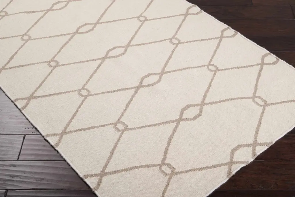 Collection: Rarden Colors: Tan, Peach Construction: Hand Woven Material: 100% Wool Pile: No Pile Styles: Transitional Made In: India Thickness: 0.16"