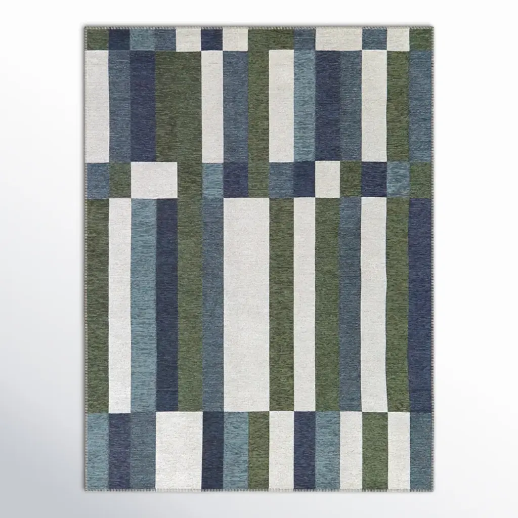 Reflections 2 is a rectangular wool rug.Zollanvari Fine Gabbehs.A subliminal and complex design by Gabi V. Lőrincz x Zollanvari, this runner has it all… colour, rhythm, perspective. The Hungarian artist/designer named this creation Reflection and how apt a name this is. The interplay between colours and the overall drawing is suggestive of the reflection of tree trunks on a pond. A distinctive addition for a chic corridor… The extensive use of geometrical and abstract patterns together with the vivid naturally dyed colours of Ghashgha’i weavings have analogies with the studies and learnings of the Bauhaus movement, in particular, with one of its key masters, Josef Albers. He studied in depth the interaction of colour and human perception. His paintings and artworks with squares reminded the designers of this collection of the geometries of Gabbeh carpets and the colour interaction between the single elements woven into them. In Albers’s universe, colour seduced, beguiled, swindled, and these characteristics made colour the most fascinating of art’s formal elements. This concept is at the very heart of this new collection. SoFar SoNear, Milan, designed this collection choosing iconic Ghashgha’i motifs that they simplified using squares and triangles. The lion, the peacock, woman and man are the motifs they drew upon merging the style of Gabbehs with the drawings of Albers.