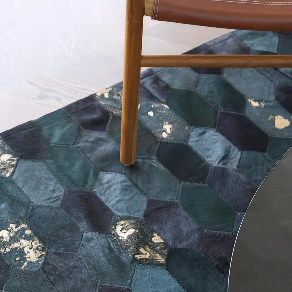 The retro, science fiction inspired Hornet features bold pops of vibrant colour with luxe gold detailing.Playful yet evocative, the Hornet takes its cues from the rich colours of the desert and fun poolside style.Art Hide cowhide rugs are stitched together using commercial grade nylon thread and feature a branded ribbon edge finish. They are built to last a lifetime.This rug can easily be customized to any colour, size or shape. This gorgeous rug is well suited to living areas and bedrooms alike and can be saturated with more colour and gold or colours can be changed out.Art Hide rugs are usually made to order. Please allow approximately 4 weeks for delivery.
