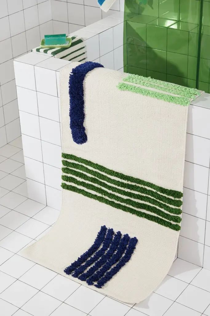 The Reyes rug is named after our favorite quiet town in Northern California called Point Reyes. The textured stripes add a graphic detail to your bathroom floor without overwhelming with pattern. 100% cotton construction dries quickly and feels soft and plush under bare feet. *Please note: Runners are expected to be back in stock in mid-January 2026. We are currently taking pre-orders for this item.