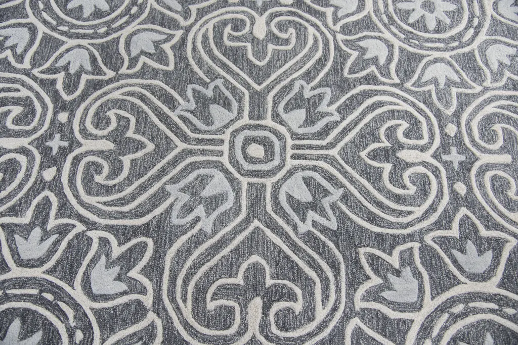 Collection: Opulent Colors: Gray, Light Gray, Brick Red Construction: Hand Tufted Material: Face: 100% Wool Pile: High Pile Pile Height: 0.6" Styles: Transitional Backing: Canvas Made In: India Price Range: $$$$$ (Affordable)