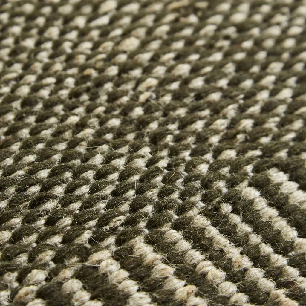 Rombo is a series of rugs designed by Studio MLR. Characterised by the materials used in the rugs. The combination of wool and jute creates a robust surface. The woven construction forms small, distinctive rhombi patterns, which the series is named after. At either end of the rug, straight lines encase the rug creating an elegant contrast between the colours and patterns. The series consists of a small, large and runner rug in each colour.
