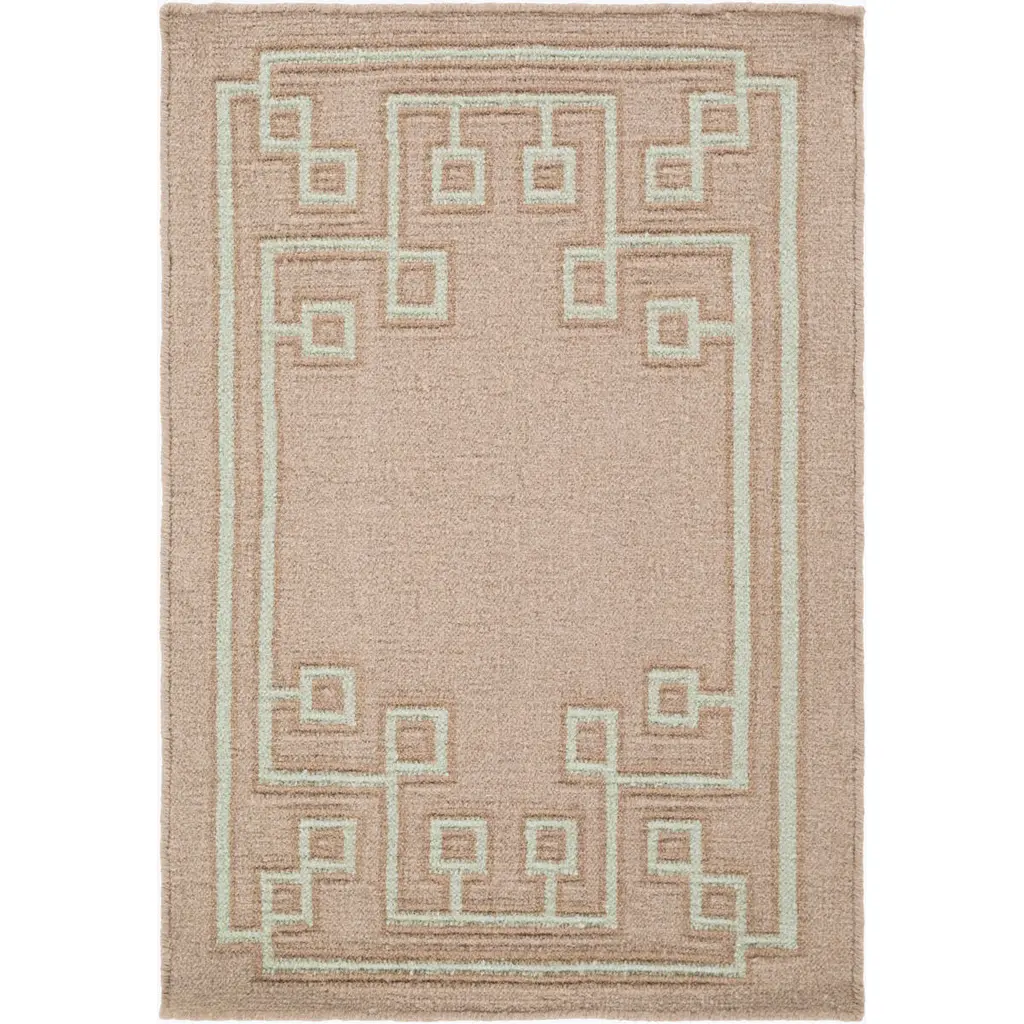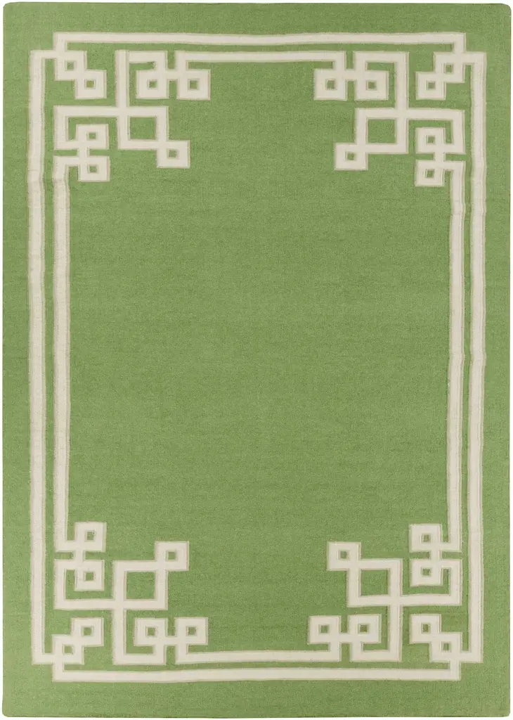 Collection: Rosiclare Colors: Green, Medium Gray, Peach Construction: Hand Woven Material: 100% Wool Pile: No Pile Styles: Solid & Striped Made In: India Thickness: 0.16" Price Range: $$$$$ (Affordable)