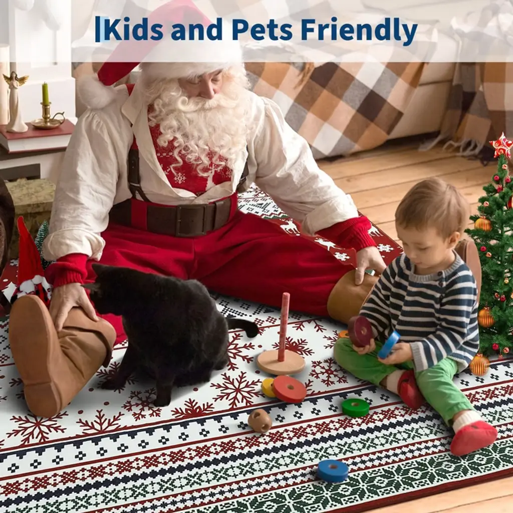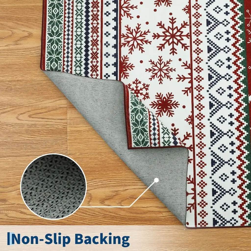 Celebrate the holidays in style with this cheerful area rug, featuring timeless Christmas patterns in vivid red. Designed for versatility and comfort, its low-profile construction fits seamlessly in any room. A non-slip base offers security, while the lightweight, foldable design makes it easy to move and store. A festive and practical way to brighten up your winter decor.