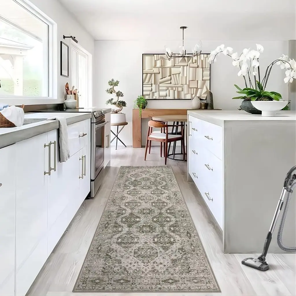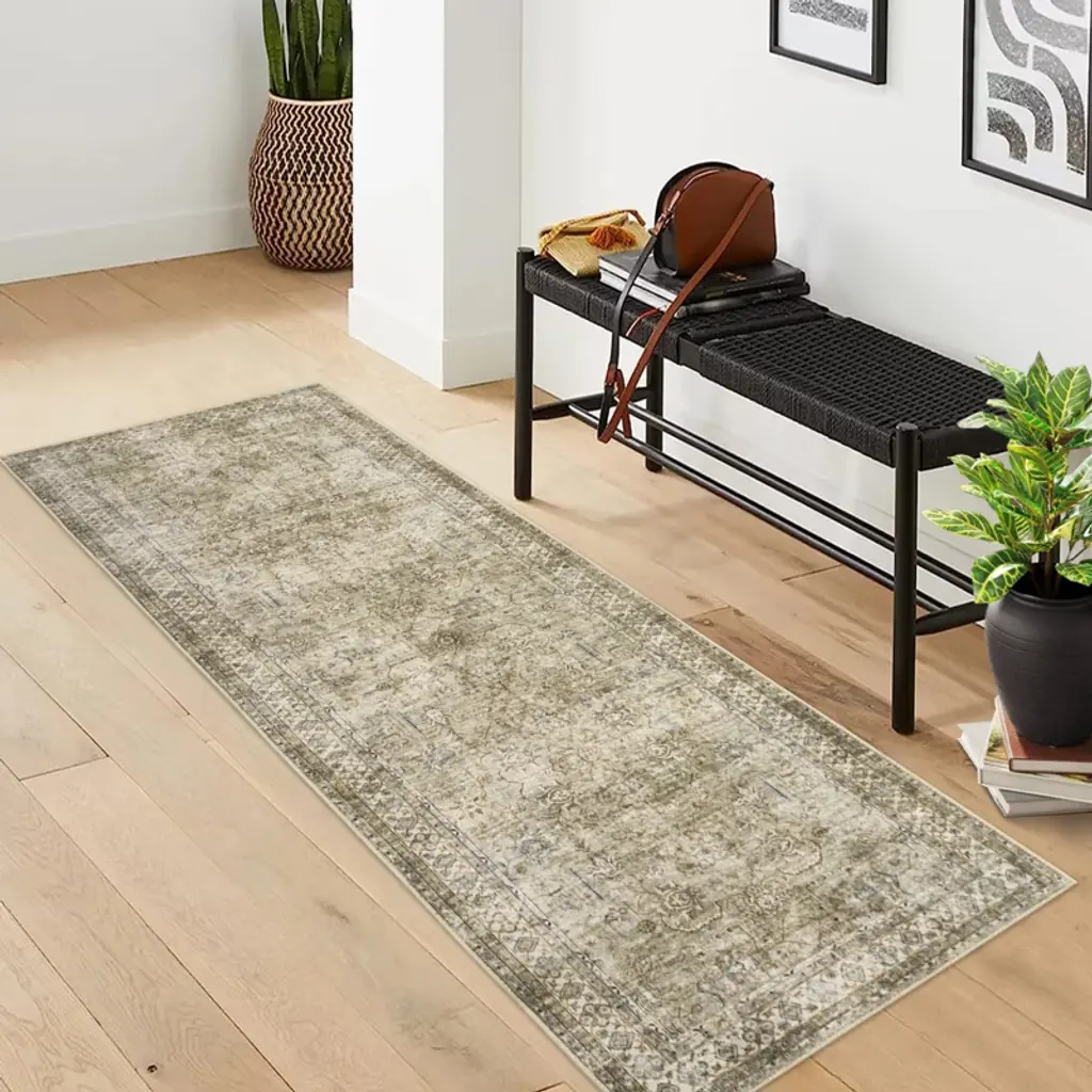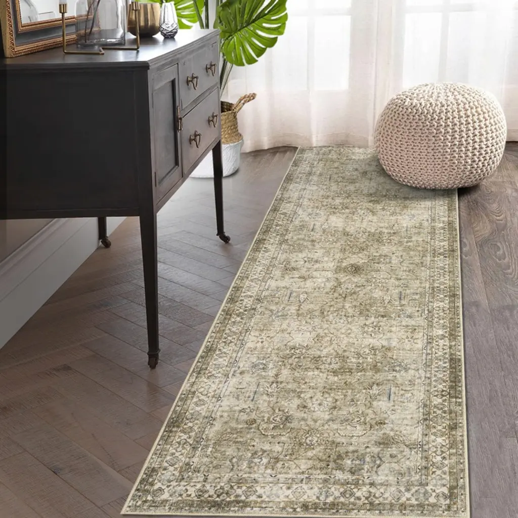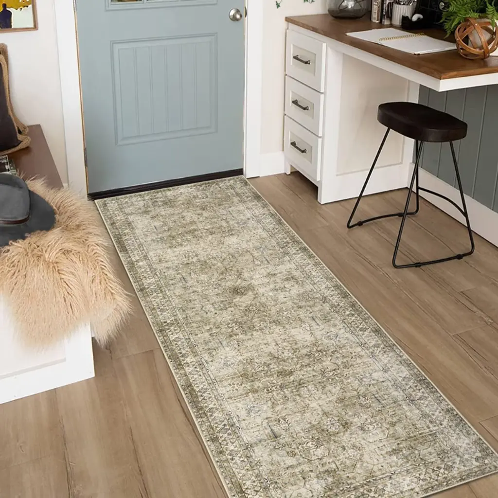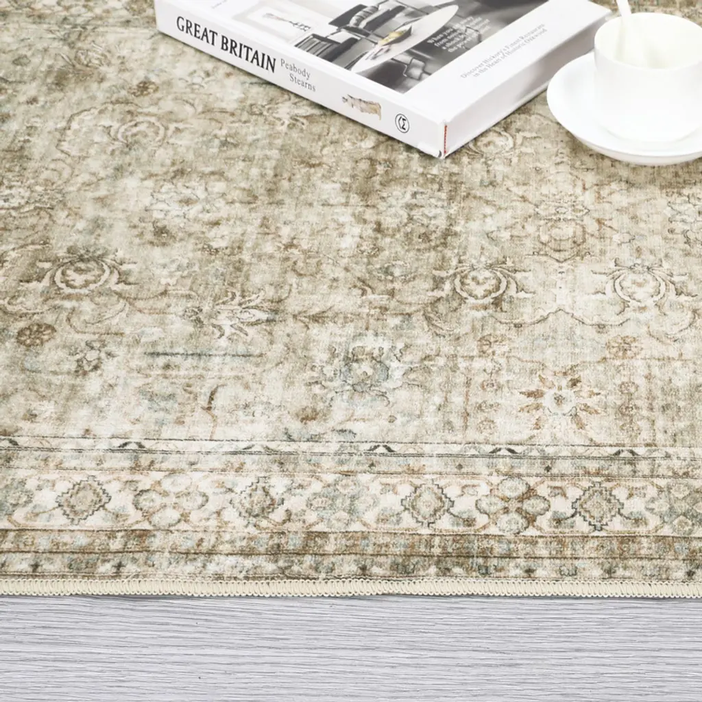 Dreaming of a cozy yet stylish upgrade for your home? This 9x12 ft vintage floral rug, with its non-slip backing and washable design, blends timeless charm with modern convenience—ready to make your space feel complete?Highlights at a glance:Vintage distressed floral design with oriental charm.Non-slip TPR rubber backing for safety and stability.Soft, warm texture perfect for barefoot comfort.Low-pile, thin design fits under furniture and doorways.Washable and vacuum-friendly for easy maintenance.Tightly machine-woven with sturdy edges, non-shedding, and fade-resistant.Lightweight and foldable for convenient storage and portability.Versatile for living rooms, bedrooms, or offices.Specification:Size: 9x12 ftColor: brown+greenMaterial: polyester fibre+textured TPRApplication: living room/bedroom/dining room/kids room/playroom/office/kitchen/farmhouse/floorFriendly note:Upon receiving the vintage area rug, please unfold it.Creases may appear initially, but don't worry—they will relax within a few days.Care instructions:Can be hand washed or machine washed in cold water.Recommend spot cleaning for minor spills.Support vacuum cleaner and robot vacuum.Use mild detergent.Packing list:Area rug x1