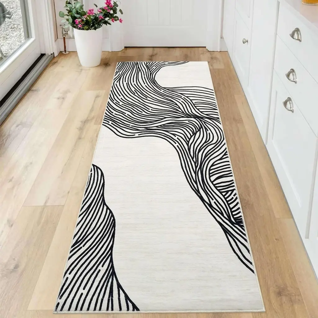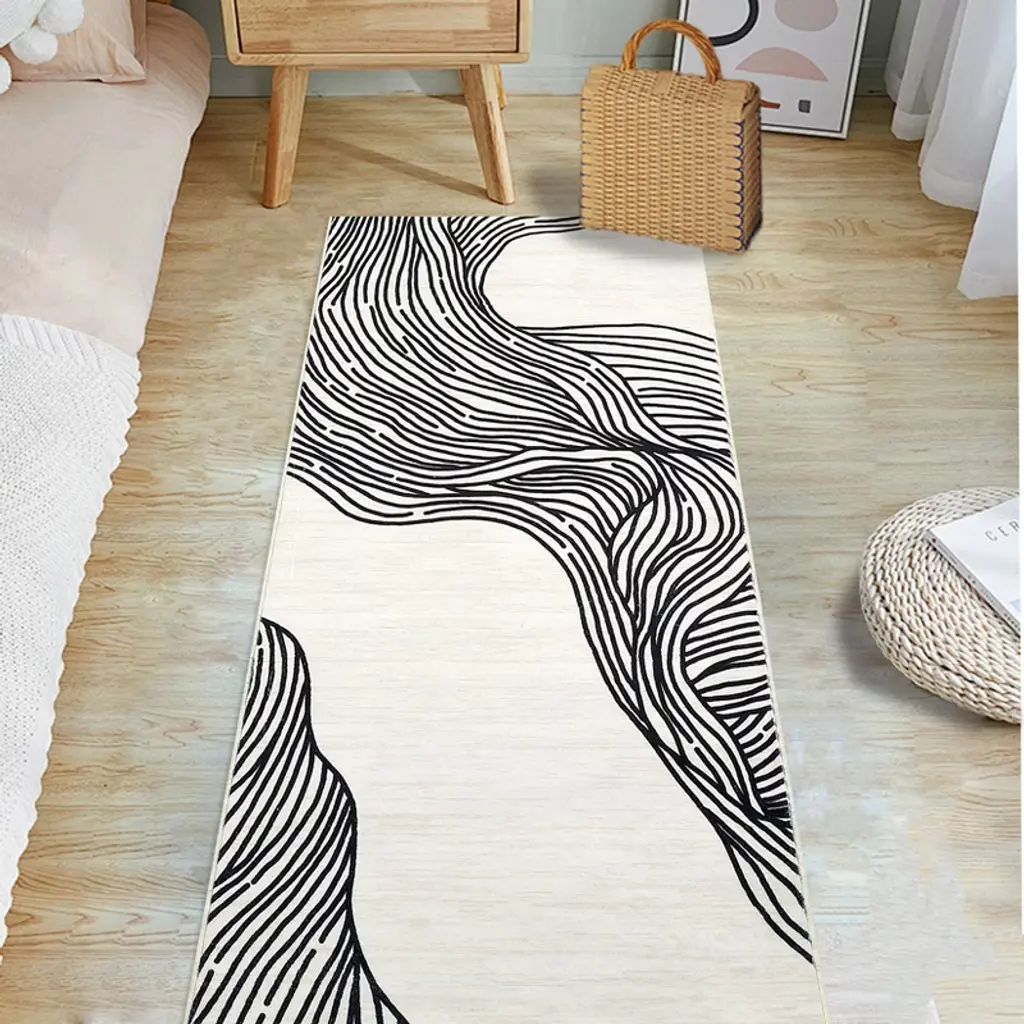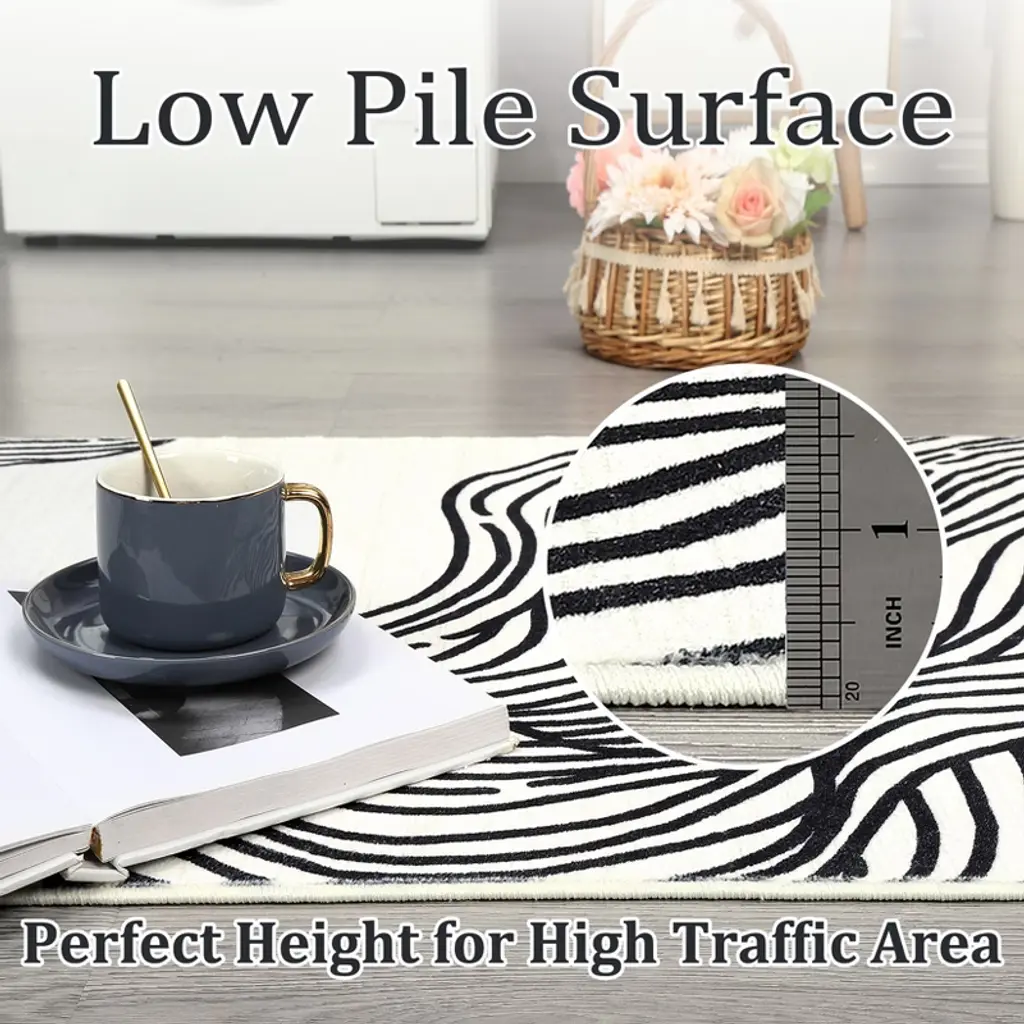 Transform your home with this stylish, machine-washable area rug, featuring a modern abstract design that combines elegance, safety, and easy maintenance for busy lifestyles.Highlights at a Glance:Stylish modern abstract design for an elegant touch.Durable and low pile, perfect for high-traffic areas.Safety-focused with non-slip TPR backing for peace of mind.Versatile use in nurseries, bedrooms, living room and entryways.Hassle-free cleaning with machine washable convenience.Specifications:Size: 2x6, 5x7, 6x9, 8x10, 9x12, 10x13 Color: Beige and BlackMaterial: Polyester, Faux Wool Note:Avoid using bleach to maintain the rug's color and texture.For minor stains, spot clean using a damp cloth or vacuum immediately. This will help prevent stains from setting in.The color may appear significantly different depending on the lighting conditions.