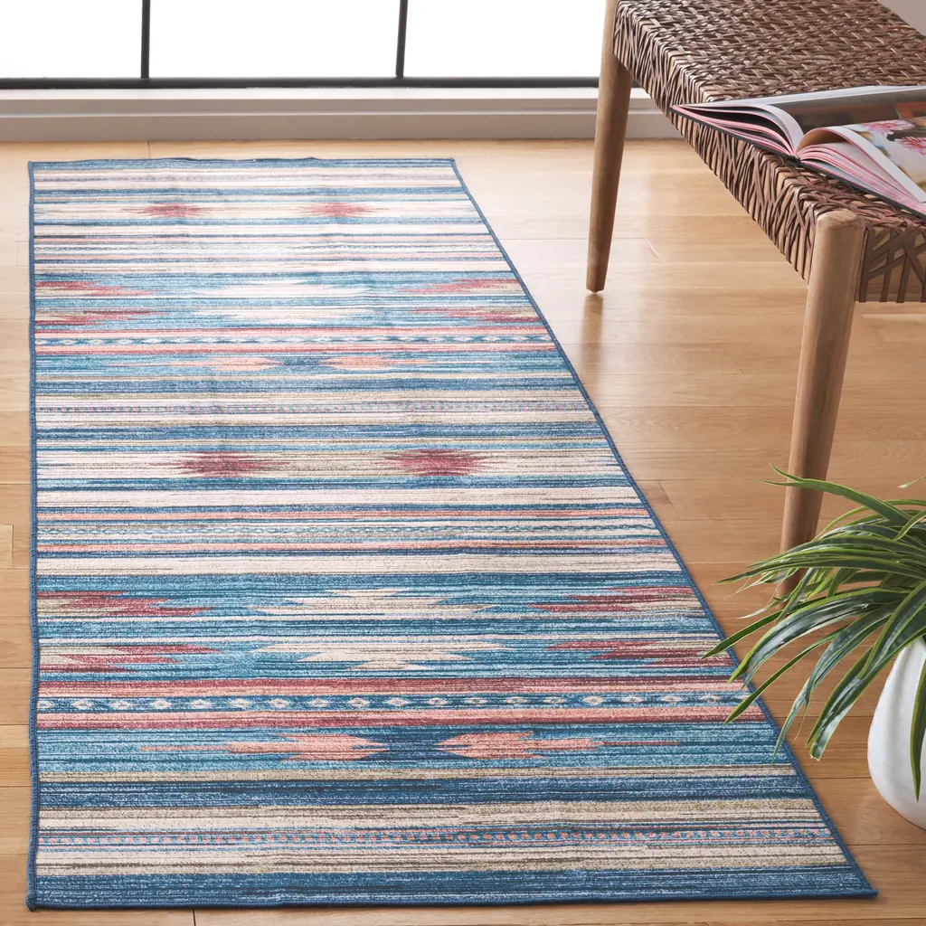 A stunning fusion of bohemian style and oriental patterns, the rugs in SAFAVIEH's Arizona Collection are a must-have for anyone looking to make a statement in their home. These rugs are machine washable and slip resistant, making them perfect for busy households that necessitate both style and practicality. The distressed look of the rugs adds a trendy edge to the traditional oriental patterns, creating a unique and captivating design.Features:Pile height is less than 0.25 inchesModern & Contemporary StyleChic PatternWeave Type: Machine-MadeMade from polyester fibers with a slip resistant backingKid and pet-friendlyStress-free cleaning includes regular vacuuming and gently blotting out minor stains with a mild detergent or carpet cleaner; Machine wash with cold water (do not use bleach); Line drying is recommended; Use an air-dry only cycle; Larger rugs may require washing in a commercial-laundromat size front-load machineFeatured in SAFAVIEH's Arizona CollectionFor over 100 years, SAFAVIEH has been crafting rugs of the highest quality and unmatched style.