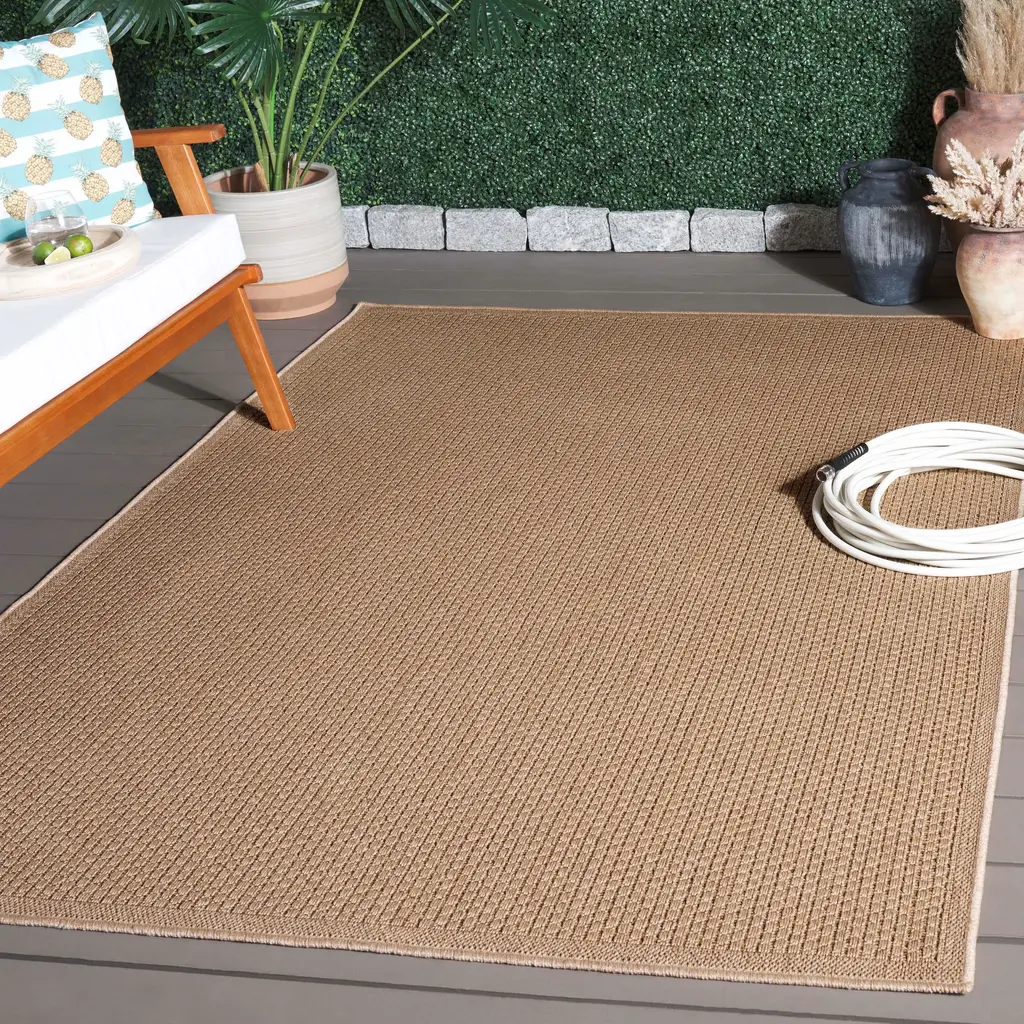 SAFAVIEH's Atrium Sisal rug seamlessly blends the boundaries between indoor and outdoor elegance. Crafted with easy-care fibers, this rug is a testament to non-shedding practicality and effortless cleanliness. Revel in the timeless charm of natural fiber aesthetics without the demanding upkeep, as the Atrium Sisal rug invites you to indulge in both comfort and style in any space. Perfect for the backyard, patio, mudroom, living room, bedroom, or dining room. Rug sizes may vary slightly. Features:Stain, Weather, and UV-Resistant: Machine-woven from enhanced synthetic fibers for virtually no shedding and stain resistanceKid and Pet-Friendly: Safe for high-traffic areas of the home and conveniently kid approved and pet-friendly for life's unpredictable messesTrendy Style: Design beautifully enhances any room, including the patio, deck, kitchen, backyard, porch, dining room, mudroom, veranda, living room, or entrywayEasy Maintenance & Durable: Stress-free cleaning includes regular vacuuming, and rinsing with a garden hose with soapy water and air drying; When not in use for outdoors, we recommend storing awayLow Pile Height: Pile thickness is 0.25-inches for a sleek lookFeatured in SAFAVIEH's Atrium Sisal CollectionFor over 100 years, SAFAVIEH has been crafting rugs of the highest quality and unmatched style.