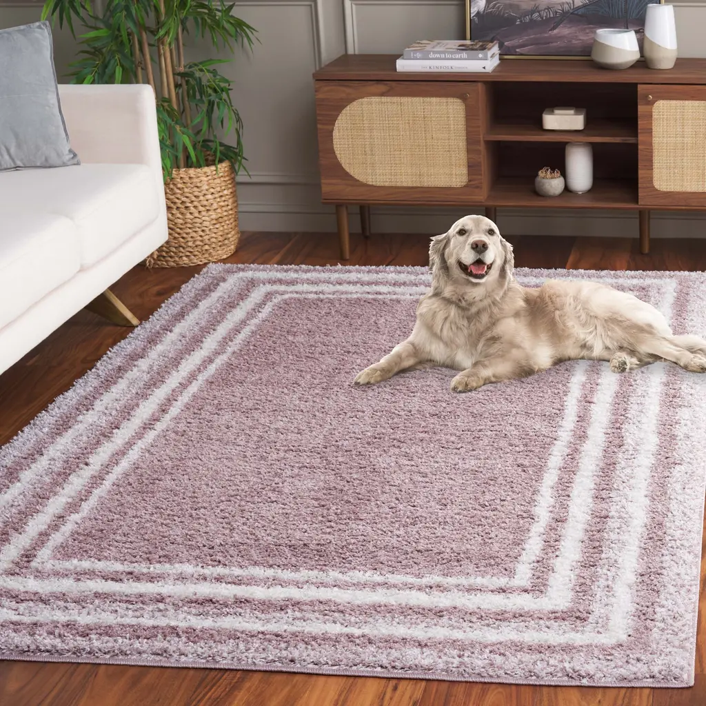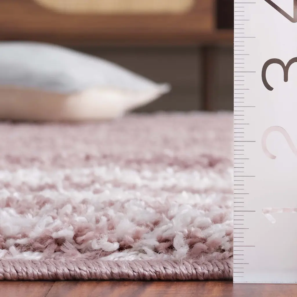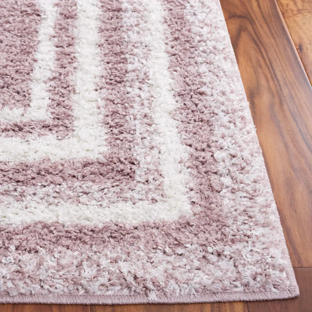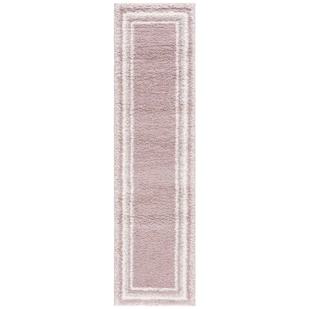Safavieh Border & Stripe Shag Eirny Modern 1.4-Inch Thick Rug - 2'2" X 8' Runner - Pink/ivory - Runner