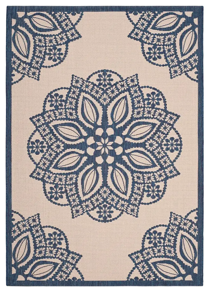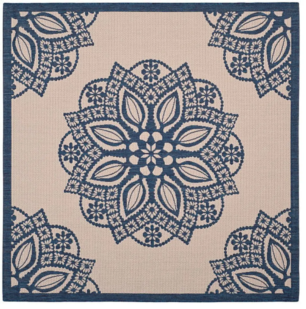 Safavieh Courtyard Cy6139-258 Outdoor Rug, Beige/navy, 2'4" X 12'0"