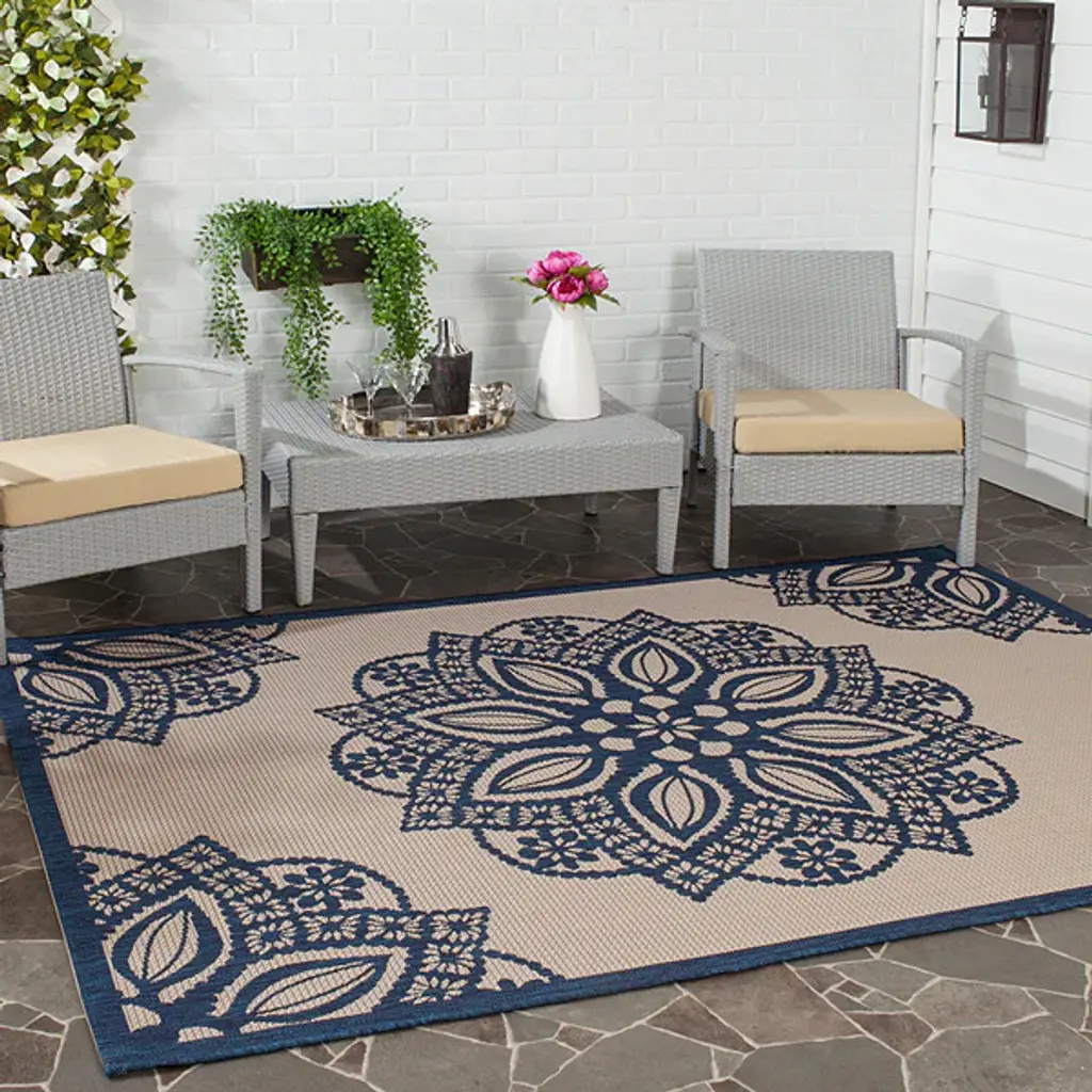 Safavieh Courtyard Cy6139-258 Outdoor Rug, Beige/navy, 9'0" X 12'0"