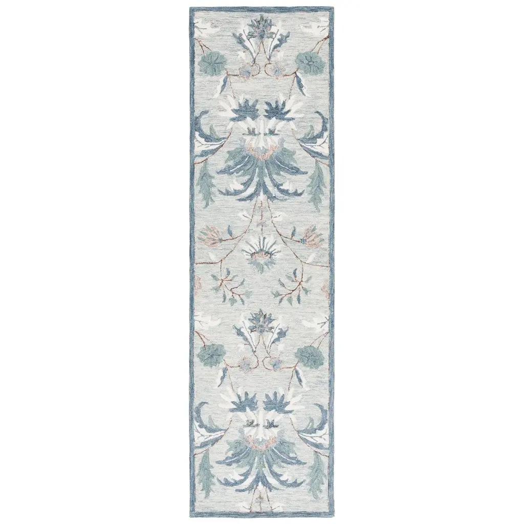 Safavieh Hand-Tufted Blossom Merushe Modern & Contemporary Wool Rug - 2'6" X 8' Runner - Sage/blue - Runner