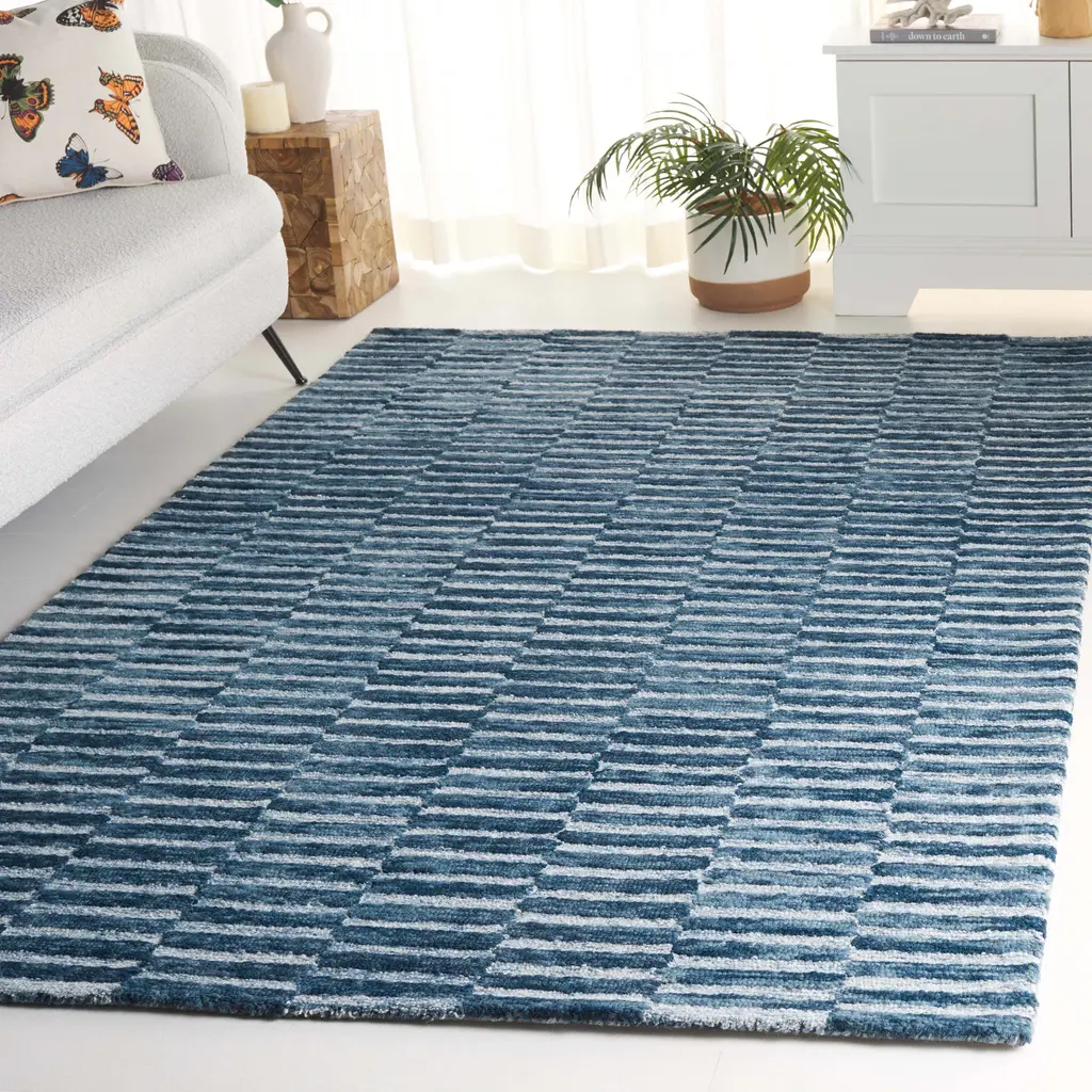 Safavieh Hand-Tufted Ebony Eiliv Modern & Contemporary Wool Rug - 2'3" X 8' Runner - Navy/light Blue - Runner