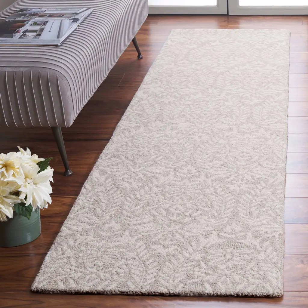 Safavieh Hand-Tufted Ebony Melia Modern & Contemporary Wool Rug - 2'3" X 9' Runner - Light Grey/ivory - Runner