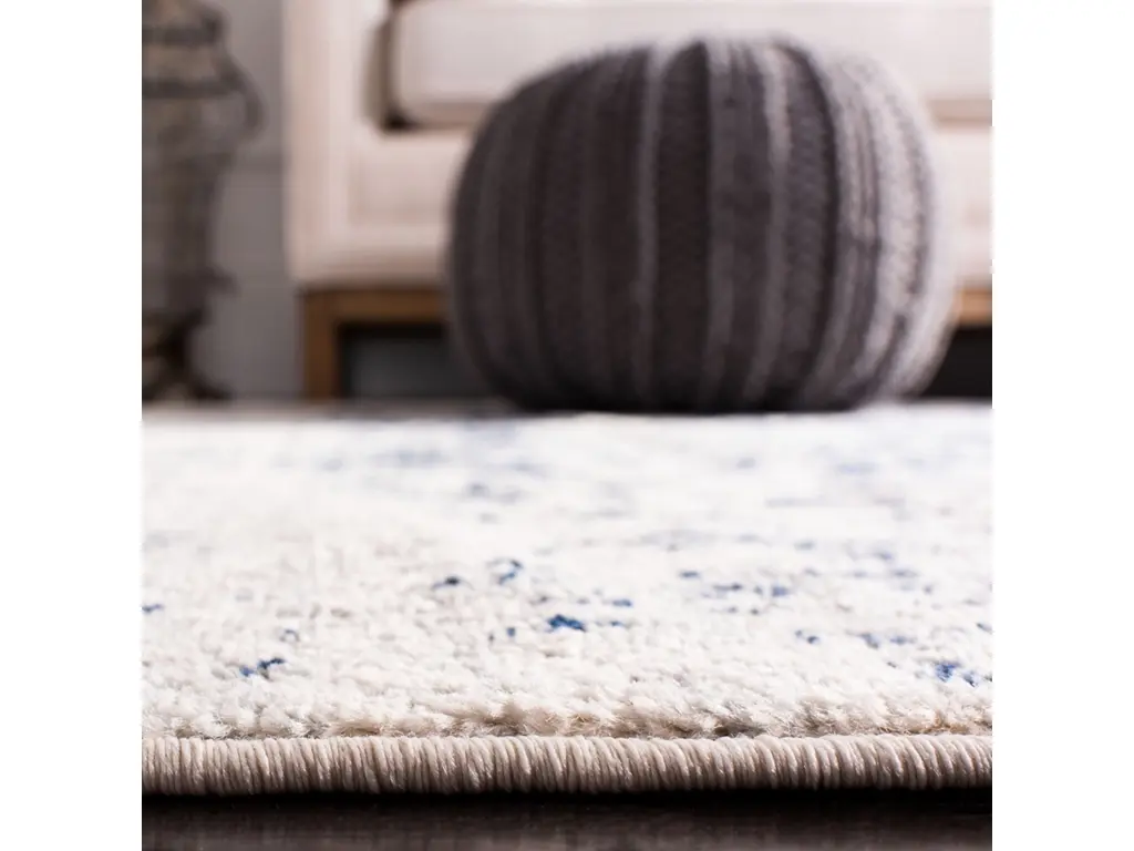 The heirloom elegance of yesteryear becomes chic, metro-mod décor in this contemporary styled, designer-look finish area rug. Traditional medallions and floral blooms, colored in décor-friendly navy and soft cream, are finished with a distressed, antique patina for a classic look that is all-together now. Power loomed using soft, easy-care synthetic yarns for long-lasting brilliance.