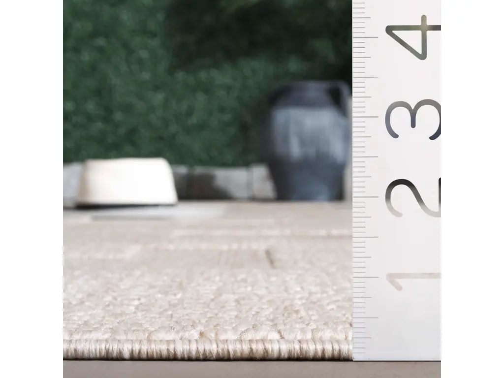 Milos outdoor rugs bring interior decor style to leisure living spaces indoors and out. Styled with modern geometric patterns in a myriad of fashionable colors, Milos rugs are easy-care, easy-clean and ideally suited for busy traffic areas of the home. Power loomed using high-performance synthetic yarns for long lasting charm and beauty.