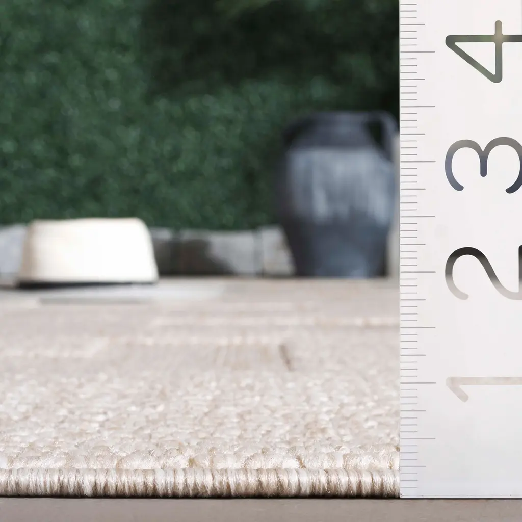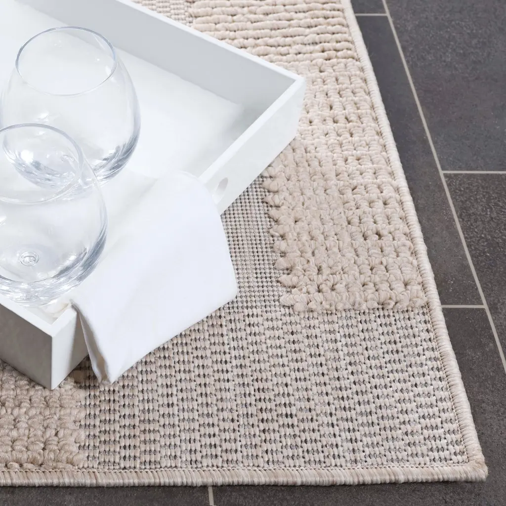 Elevate your outdoor or indoor spaces with SAFAVIEH's Milo Outdoor Rug Collection, designed for both style and practicality. Crafted for easy cleaning, these rugs are perfect for the patio, outdoor spaces, mudrooms, or kitchens, showcasing their versatile use. The collection features contemporary patterns with raised textured details, adding a touch of sophistication to any setting while ensuring resilience in high-traffic areas. Rug sizes may vary slightly. Features:Stain, Weather, and UV-Resistant: Machine-woven from enhanced synthetic fibers for virtually no shedding and stain resistanceKid and Pet-Friendly: Safe for high-traffic areas of the home and conveniently kid approved and pet-friendly for life's unpredictable messesTrendy Style: Design beautifully enhances any room, including the patio, deck, kitchen, backyard, porch, dining room, mudroom, veranda, living room, or entrywayEasy Maintenance & Durable: Stress-free cleaning includes regular vacuuming, and rinsing with a garden hose with soapy water and air drying; When not in use for outdoors, we recommend storing awayLow Pile Height: Pile thickness is 0.25-inches for a sleek lookFeatured in SAFAVIEH's Milos CollectionFor over 100 years, SAFAVIEH has been crafting rugs of the highest quality and unmatched style.