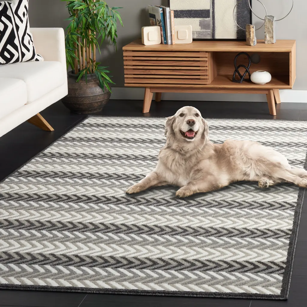 The Pyramid rug collection showcases distressed trendy styles in a muted color palette. These stunning rugs are a beautiful complement to modern and contemporary furnishings, and are supremely practical with virtually non-shedding fibers for placement in higher traffic areas.Features:Stain Resistant & Non-Shedding: Machine-woven from enhanced synthetic fibers for virtually no shedding and stain resistanceKid and Pet-Friendly: Safe for high-traffic areas of the home and conveniently kid approved and pet-friendly for life's unpredictable messesTrendy Style: Design beautifully enhances any room of the home, from the living room, dining room, bedroom, entryway, nursery, dorm room, study, home office, or eat-in kitchenEasy Maintenance & Durable: Stress-free cleaning includes regular vacuuming and gently blotting out minor stains with a mild detergent or carpet cleanerFeatured in SAFAVIEH's Pyramid CollectionFor over 100 years, SAFAVIEH has been crafting rugs of the highest quality and unmatched style.