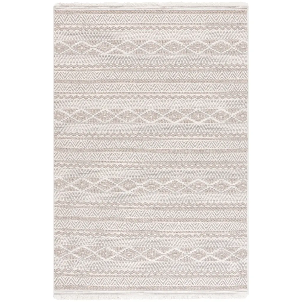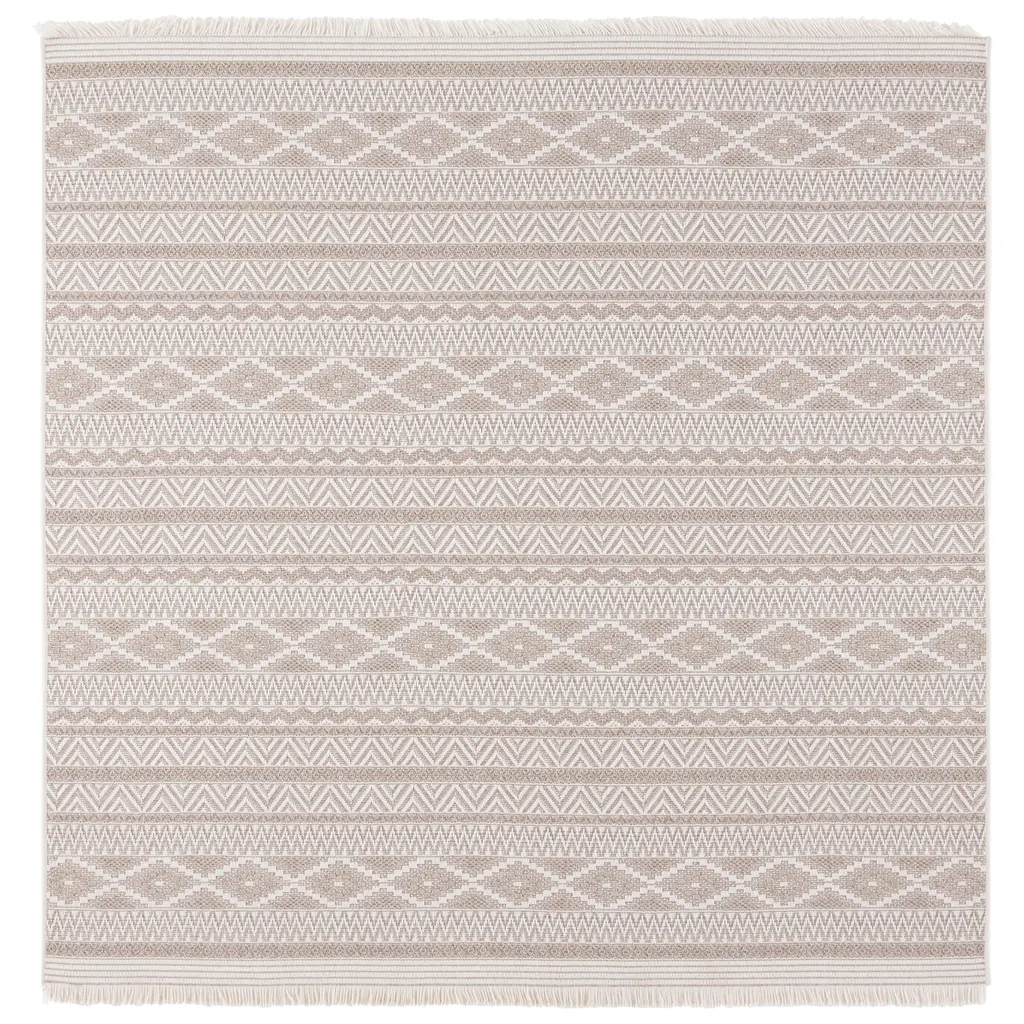 Transform your space with SAFAVIEH's Wicker Rug Collection, expertly crafted from durable synthetic fibers that effortlessly blend indoor and outdoor living. The stylish fringe detail adds a boho vibe, creating a fashionable and inviting atmosphere. Evoking rustic farmhouse charm through its color palette and patterns, the Wicker Collection is a versatile and chic addition to any area of your home. Rug sizes may vary slightly. Features:Stain, Weather, and UV-Resistant: Machine-woven from enhanced synthetic fibers for virtually no shedding and stain resistanceKid and Pet-Friendly: Safe for high-traffic areas of the home and conveniently kid approved and pet-friendly for life's unpredictable messesTrendy Style: Design beautifully enhances any room, including the patio, deck, kitchen, backyard, porch, dining room, mudroom, veranda, living room, or entrywayEasy Maintenance & Durable: Stress-free cleaning includes regular vacuuming, and rinsing with a garden hose with soapy water and air drying; When not in use for outdoors, we recommend storing awayLow Pile Height: Pile thickness is 0.25-inches for a sleek lookFeatured in SAFAVIEH's Wicker CollectionFor over 100 years, SAFAVIEH has been crafting rugs of the highest quality and unmatched style.