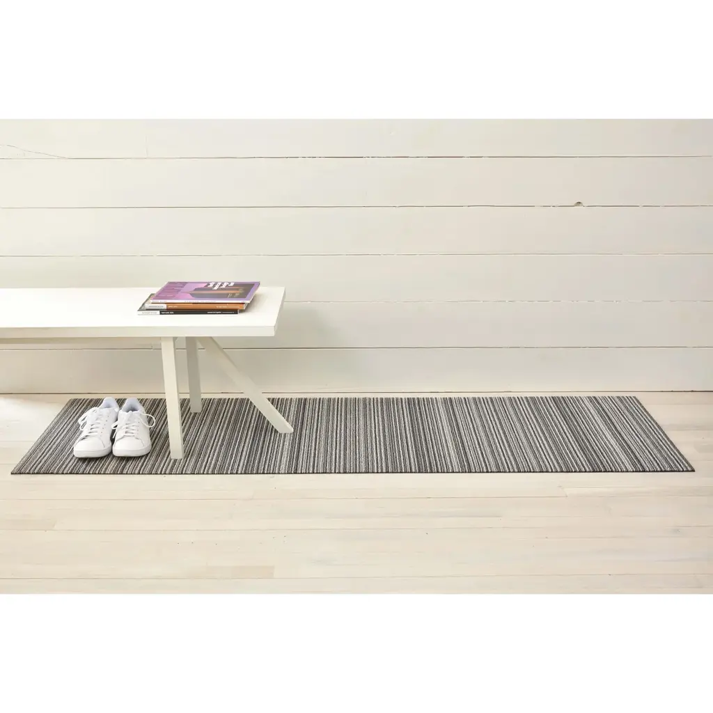 Durable, soft and hard-working, Chilewich's's Skinny Stripe Collection of shag mats is suitable for any space, indoors or out. Created by tufting custom extruded yarns as loops onto a primary backing and then binding them onto a hardworking vinyl, the mats come in a variety of sizes to bring easy-care style to your home.