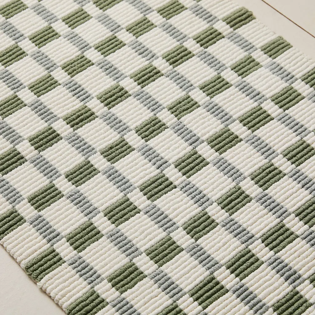 Fresh, vivid take on a classic checked pattern. Plush ribbed texture feels soothing underfoot. Handwoven by skilled artisans in India. Crafted in a Fair Trade Certified™ facility.